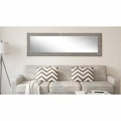 The BrandtWorks Urban Frontier Rectangular Barnwood Slim Floor Mirror features an engineered wood frame in a nature-inspired woodgrain finish. This mirror can be rested on the floor against the wall, or it comes with hanging hardware to be mounted to your wall in a vertical or horizontal placement.