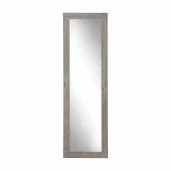 The BrandtWorks Urban Frontier Rectangular Barnwood Slim Floor Mirror features an engineered wood frame in a nature-inspired woodgrain finish. This mirror can be rested on the floor against the wall, or it comes with hanging hardware to be mounted to your wall in a vertical or horizontal placement.