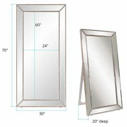 Give your room the space-expanding visual appeal of the Elizabeth Austin Titus Standing Floor Mirror. This oversized floor mirror stands easily on its own with the locking easel back design, making it easy to place anywhere you need it. The silver leaf beaded border lends the perfect finishing touch to this versatile and stunning mirror.