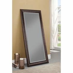 The always flattering Sandberg Furniture Full Length Leaning Mirror – 31W x 65H in. is wonderful for checking your look before you head out the door. It can also be hung vertically or horizontally on the wall, like over a headboard or sofa to brighten the dΓ©cor and add a greater sense of depth to even the most modestly sized room. It features a durable polystyrene frame in your choice of available color, and the generous glass surface is embellished with a dynamic edge bevel. D-ring brackets for wall mounting are also included with your purchase.