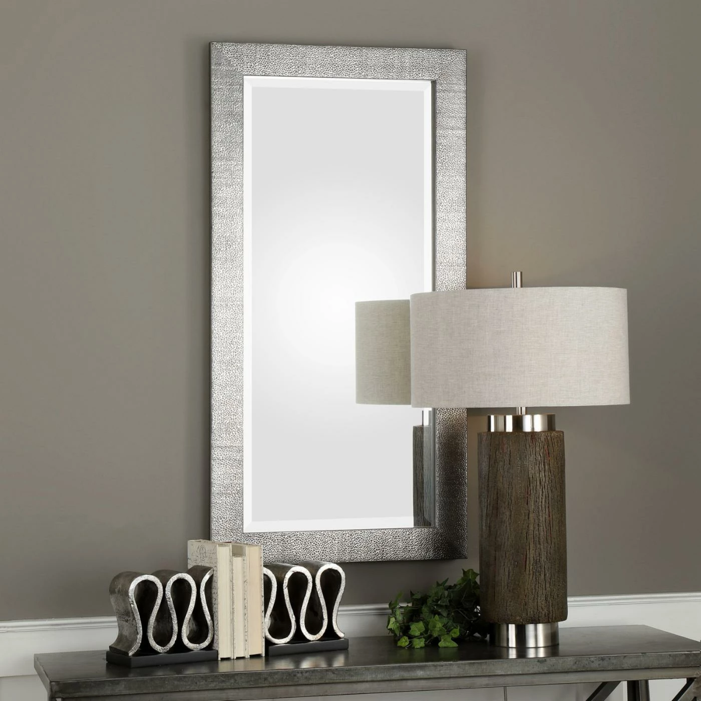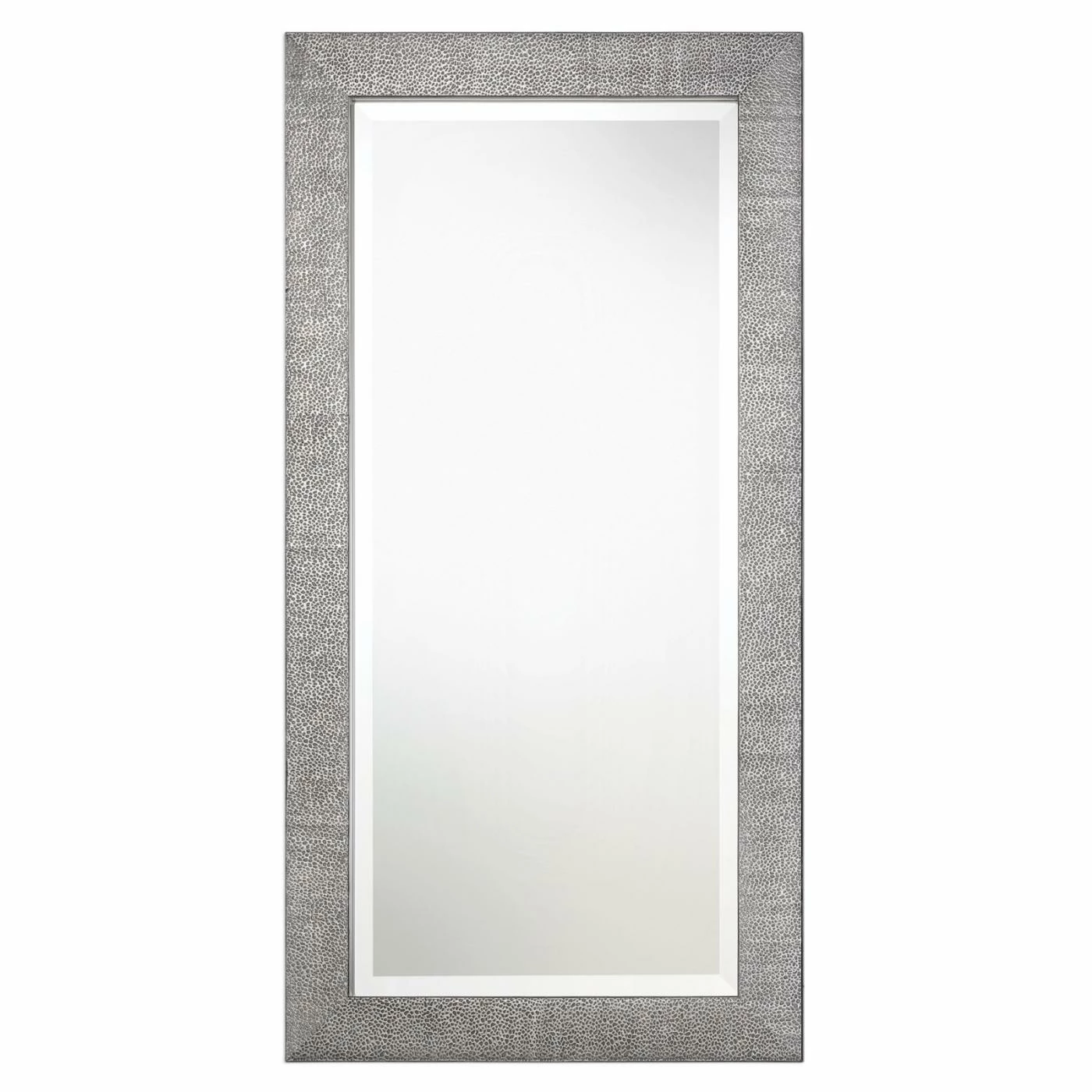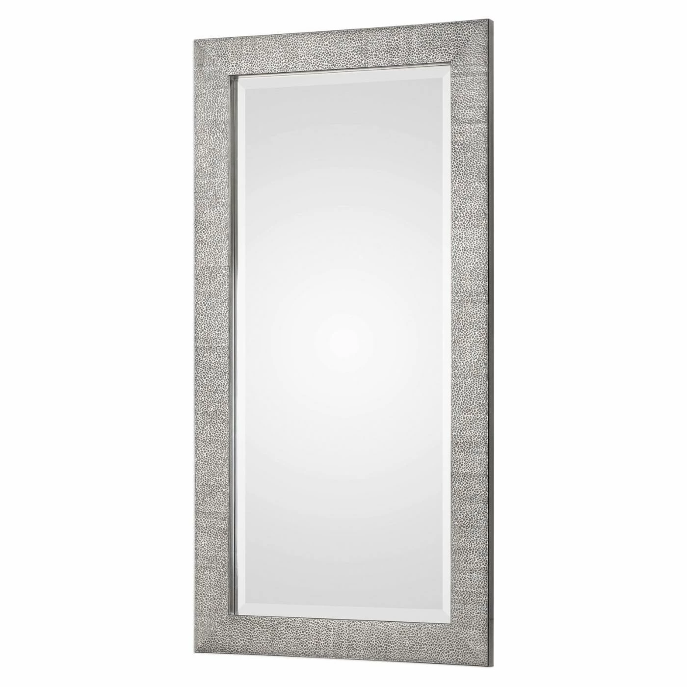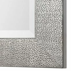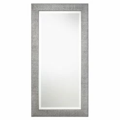 For a contemporary shimmer and shine, the Uttermost Tulare Metallic Silver Mirror is finished in metallic silver with a light gray wash. The finish brings out rich texturing in this solid wood frame. Its rectangular mirror boasts a generous bevel. Mount this wall mirror horizontally or vertically, however it best suits your space.