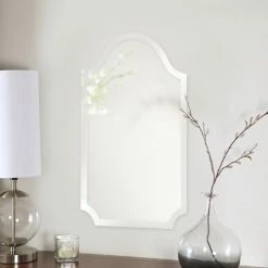 Add a touch of sophistication to any room with the Elizabeth Austin Frameless Arched Mirror. This rectangular mirror features an arched top, beveled edges, scalloped corners, and a sleek silver finish. Its simplistic elegance makes it the perfect accent piece in any space. D-rings affixed to the back allow for easy hanging straight out of the box.