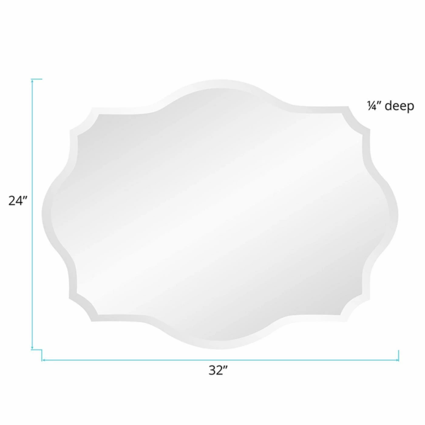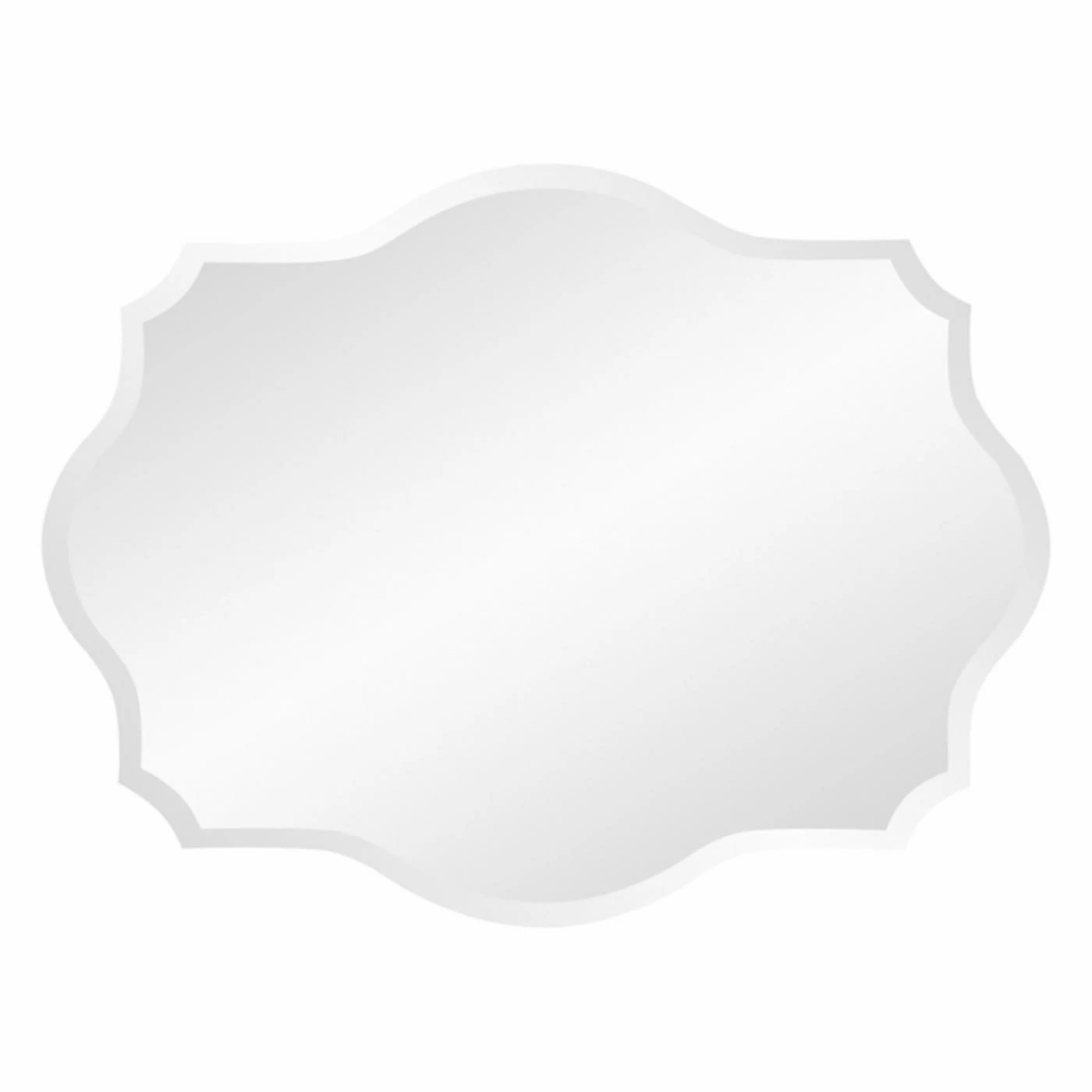 - Frameless design with scalloped corners