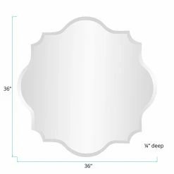 Make the reflective surface the focal point of your design with the Quatrefoil Frameless Mirror – 36W x 36H in.. This beautiful mirror features a badge-like shape with scalloped corners and round bulges on the top, bottom, and sides. No frame is used to distract from the gorgeous design, though a thick beveled edge does provide a bordered look. This all-in-one design is lightweight and meant for vertical hanging display only.