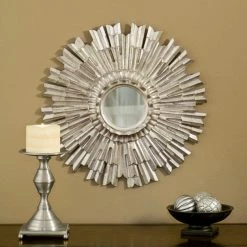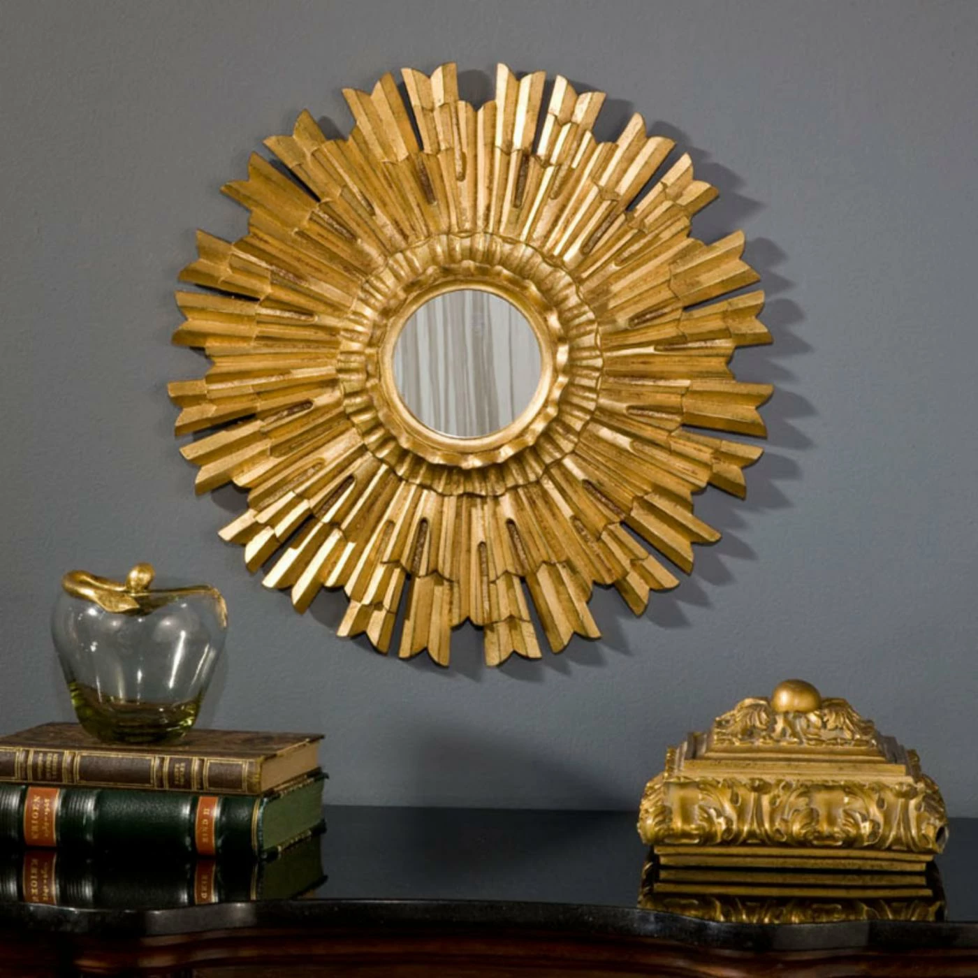 Multiple layers of irregularly notched, pleated fans surround the Hickory Manor House Eleganza Wall Mirror – 22 diam. in., creating a dramatic lion’s mane or starburst effect. Use this round mirror with contemporary or transitional decor; it’s a truly distinctive accent piece you’ll appreciate for years to come. Finishes are applied by hand. Made in the USA.