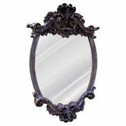 Here’s one oval mirror that’s the epitome of baroque — the Hickory Manor House Lille Wall Mirror – 33W x 51H in. has a frame featuring a level of detail and dimension that would take a virtuoso-level woodworker. For that reason, and for the sake of durability, its makers decided to mold it of resin and ground pecan shells. Made in the USA.