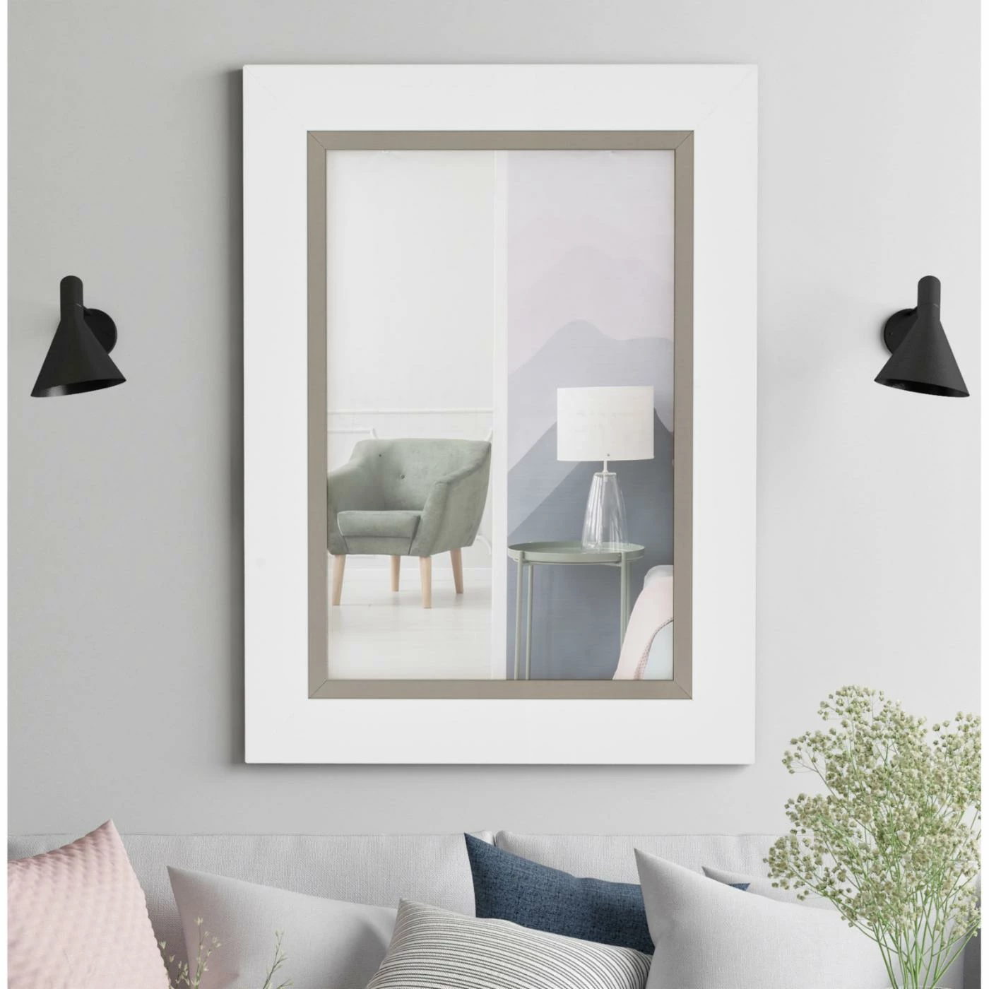 Give any room a sleek modern touch with the Hitchcock Butterfield Kiilto Wall Mirror. The gloss white wooden frame is accented with a brushed nickel inner frame. Easily add to any room with hanging hardware included.