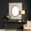 - Oval-shaped mirror with 1.25-inch beveled edge