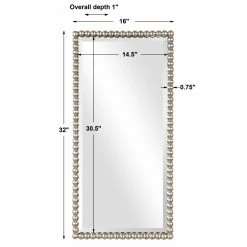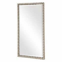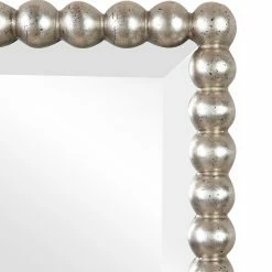 The HN Home Graves Mid-Century Modern Antiqued Silver Wall Mirror is enlivened with a whimsical frame comprised of bead-like shapes and finished in a sleek antiqued silver leaf. A generous beveled edge brings it endless sophistication intermingled with a subtle shimmer. Hang it horizontally over your fireplace or sofa, or vertically in a hallway to give your space a luxe look.