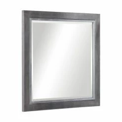 The industrial chic HN Home Macon Transitional Square Wall Mirror – 40W x 40H in. features a tarnished silver finish with metallic silver inner edge. A generous beveled edge makes the square mirror shimmer and shine. The mirror is equipped with hanging hardware at the back so it’s ready to style on the wall over your entryway console table, dining server, or wherever you choose.