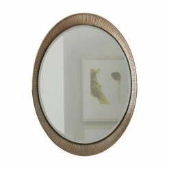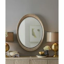 A normal mirror would add light and depth to a space, but the Hooker Furniture Elixir Oval Wall Mirror – 31.5W x 42H in. adds all that and just a bit more. A thick mirror of beveled glass rises above the frame, bringing a bit of drama to the design. The oval-shaped frame is crafted from solid poplar with an exterior of sandblasted walnut veneers. The soft tones of the beige-gray finish give it a relaxed, contemporary style.