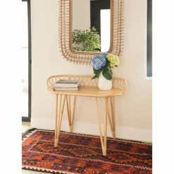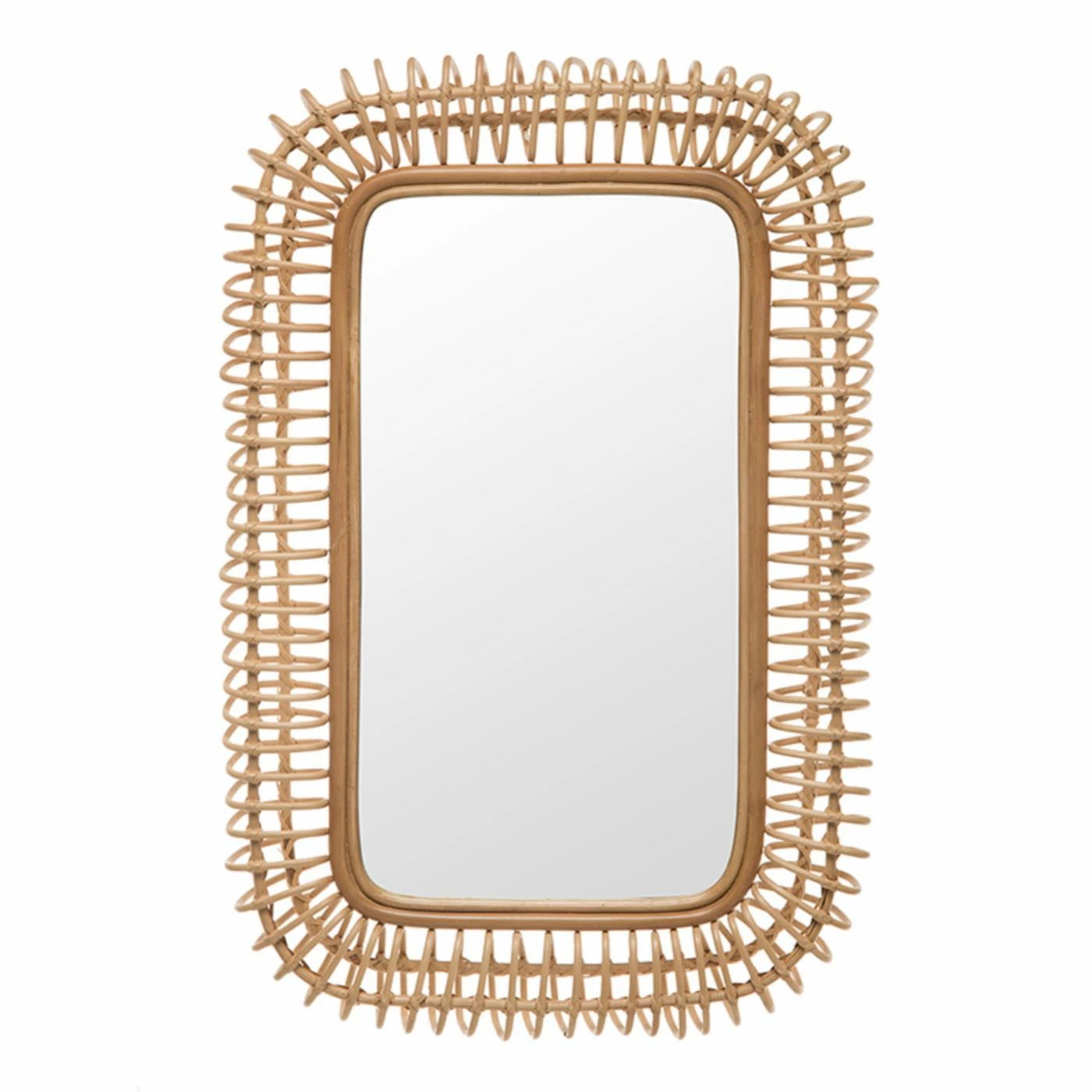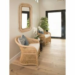 The KOUBOO Rattan Coiled Rectangular Wall Mirror – 23.5W x 35.5H in. showcases a unique coiled rattan frame that stands out. Its neutral finish allows this rectangular mirror to suit any room, including the foyer, family room, bedroom, or bathroom.