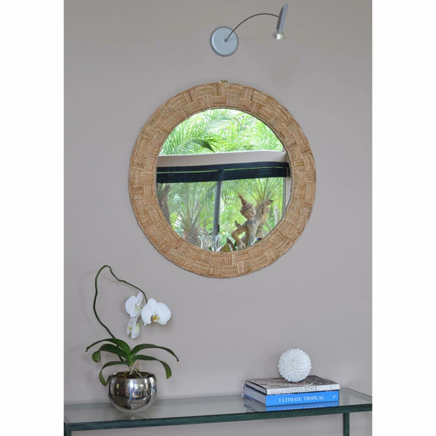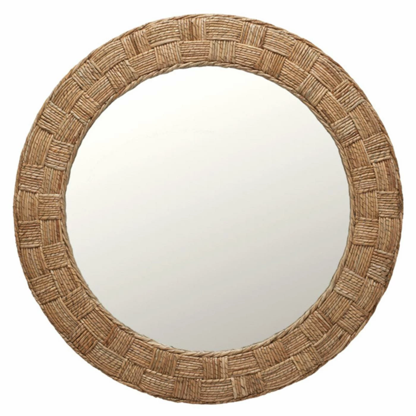 Featuring a woven buri frame, the KOUBOO Round Chequered Handwoven Buri Rope Wall Mirror – 30W x 30H in. lends a warm, natural appeal to your wall. Its round shape makes this mirror versatile, whether hung alone on a wall or incorporated into a gallery wall in a family room or foyer.