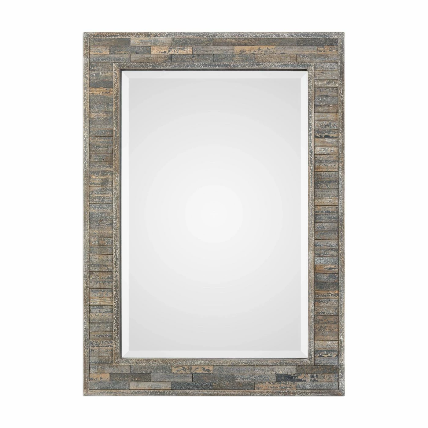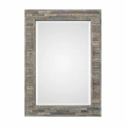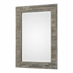 Add a rustic farmhouse look to your decor with the Magnolia Grove Galibier Accent Wall Mirror – 27W x 37H in. The weathered gray pine frame is finished in a distressed natural gray and charcoal blue. The mirror is beveled to add a bit of depth to the design. With the included hanging hardware, the mirror can be hung either vertically or horizontally so as to fit in your ideal space.