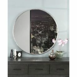 With its sleek, minimalist styling, the Martin Svensson Home Antique Pewter Framed Round Wall Mirror is a becoming accent in any space. Its round mirror is complemented by a slim metal frame that’s topped in an antique pewter finish. This wall mirror is equipped with two keyhole hooks for convenient hanging. Select from the available sizes.