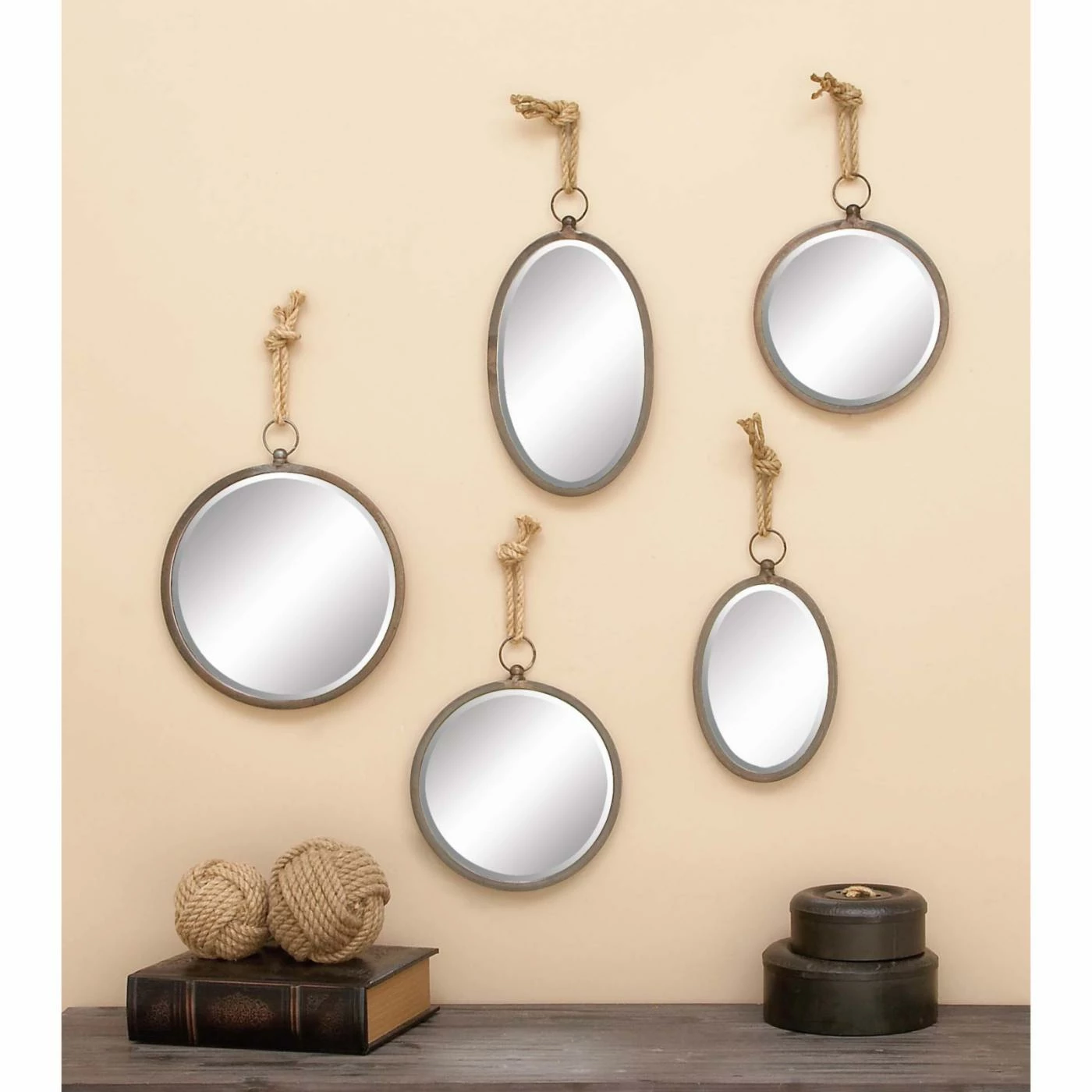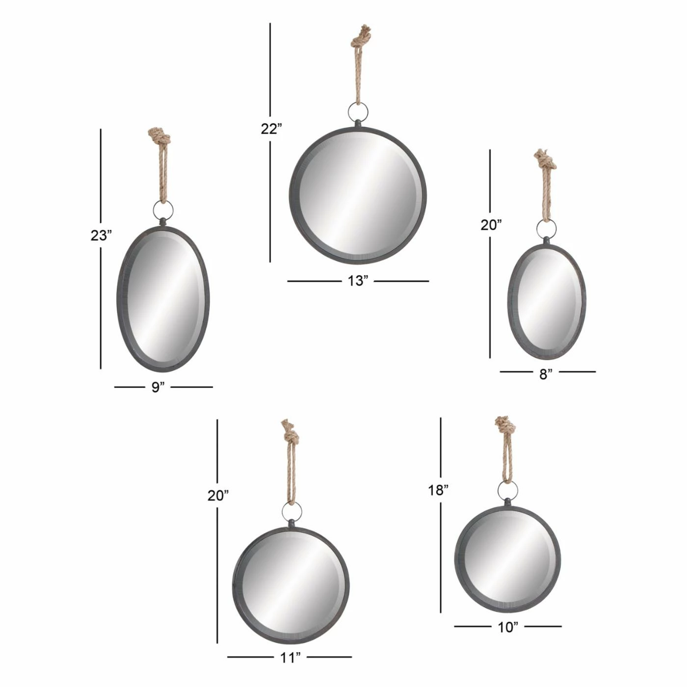 The DecMode Floating Mirrors with Rope Hangers – Set of 5 make a statement on your walls. These coordinating floating frames boast a sturdy iron construction. The distressed gray finish coordinates with any space, and rope handles add style. Welcome coastal charm into your space with this five-piece set.
