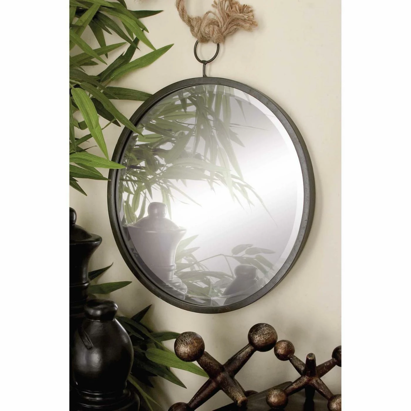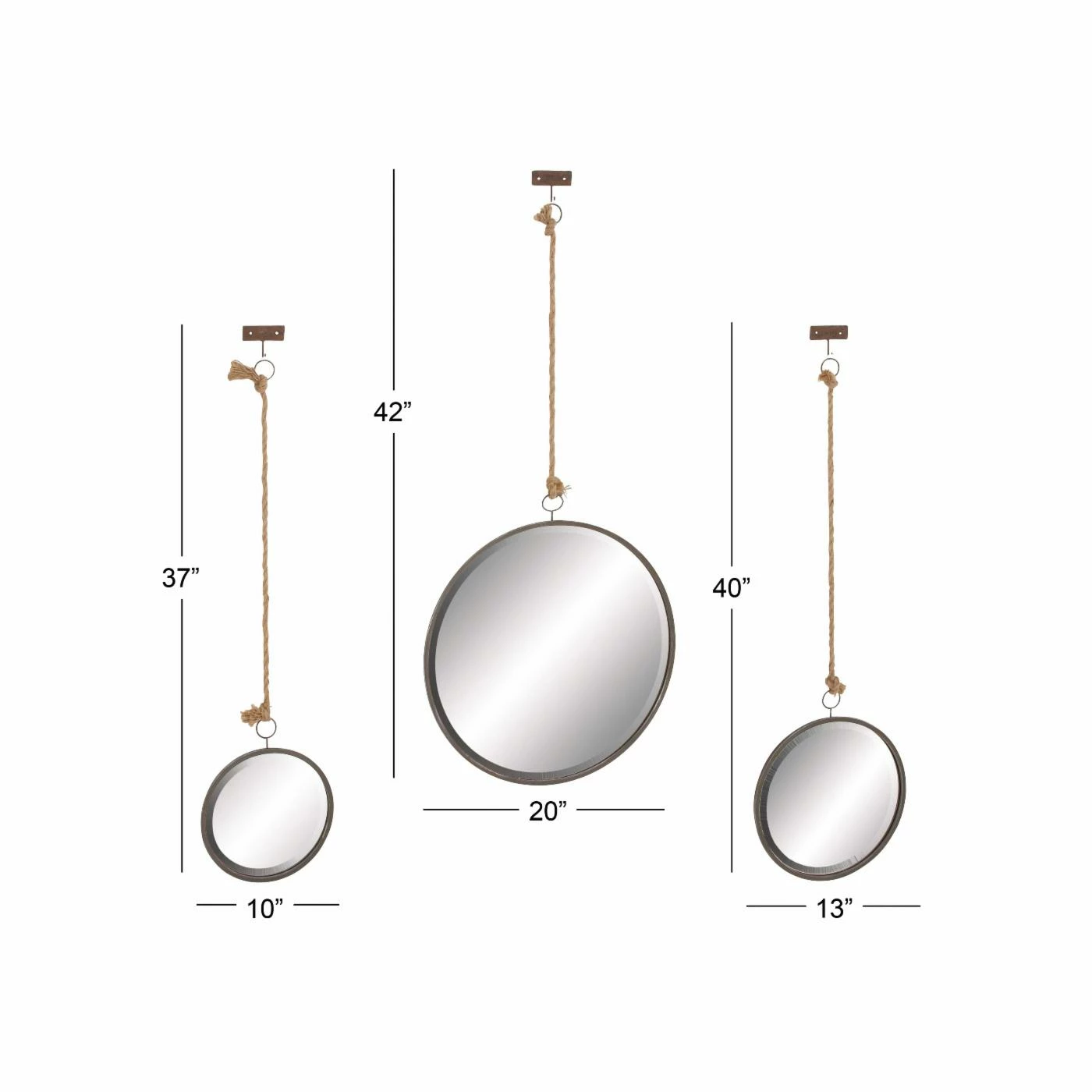 Add an industrial vibe to your home with the DecMode Modern Gray Metal-Framed Round Wall Mirrors with Rope Hangers – Set of 3. Each of the mirrors in the set boasts beveled edges surrounded by a rustic iron frame. The natural rope details allow you to display the mirrors in a variety of configurations for just the right look with your decor. Subtle sparkle and the warmth of reflected natural light make these mirrors ideal for any wall which could use a pick-me-up.