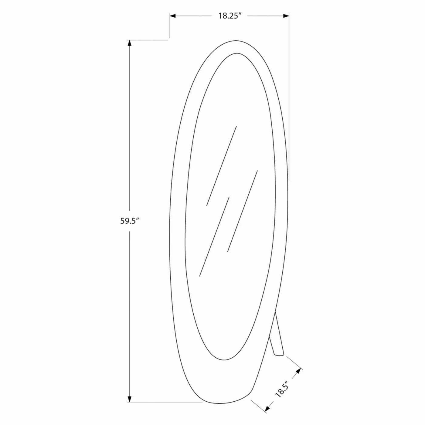 Frame your ensembles β both sartorial and room-wise β with this graphic Monarch Contemporary Oval Cheval Mirror – 59H in.. Crafted with a durable frame of strengthened engineered wood, this cheval floor mirror boasts a bold oval frame that widens at the base for a funky, modern feel. Choose from the available bold finishes.