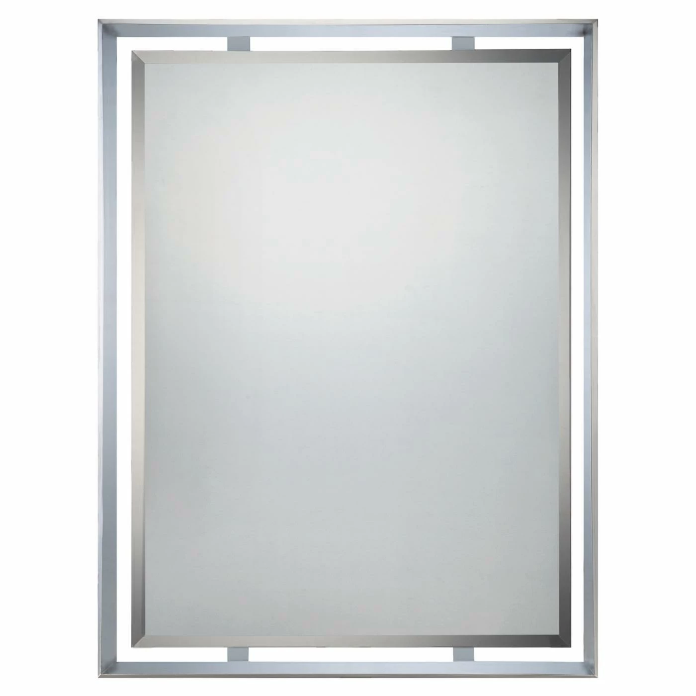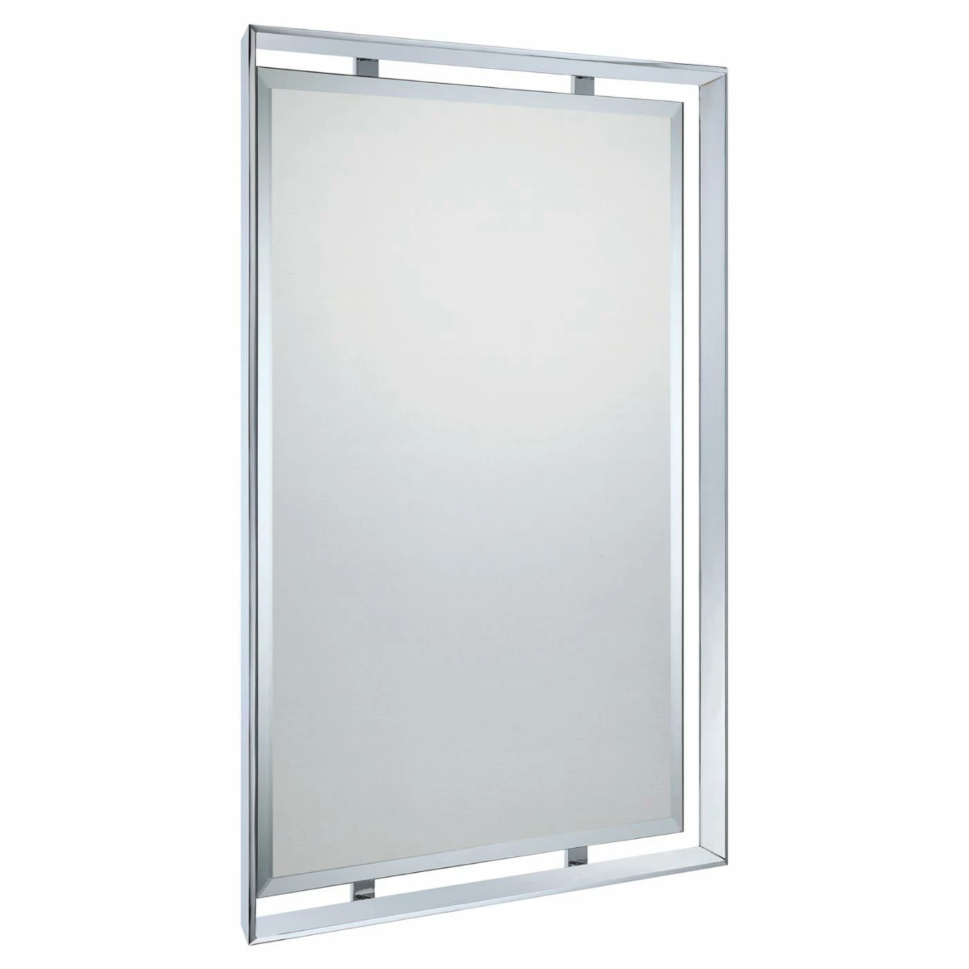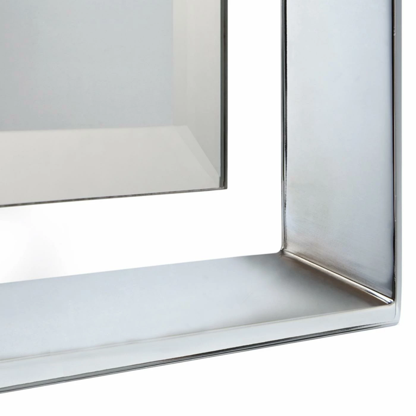 Instantly brighten your space with the modern style of the Quoizel Uptown Ritz Small Wall Mirror – 26W x 34H in.. The edgy steel frame features a bright polished chrome finish that calls to mind the luxury of the Ritz Carlton. Hang it vertically or horizontally for a bold modern focal point.