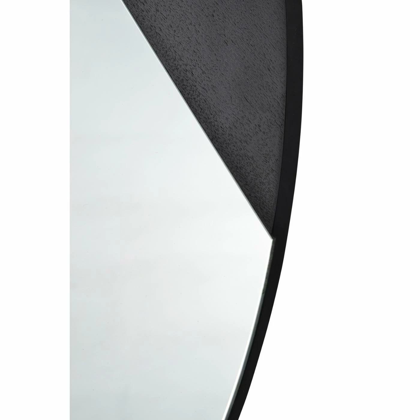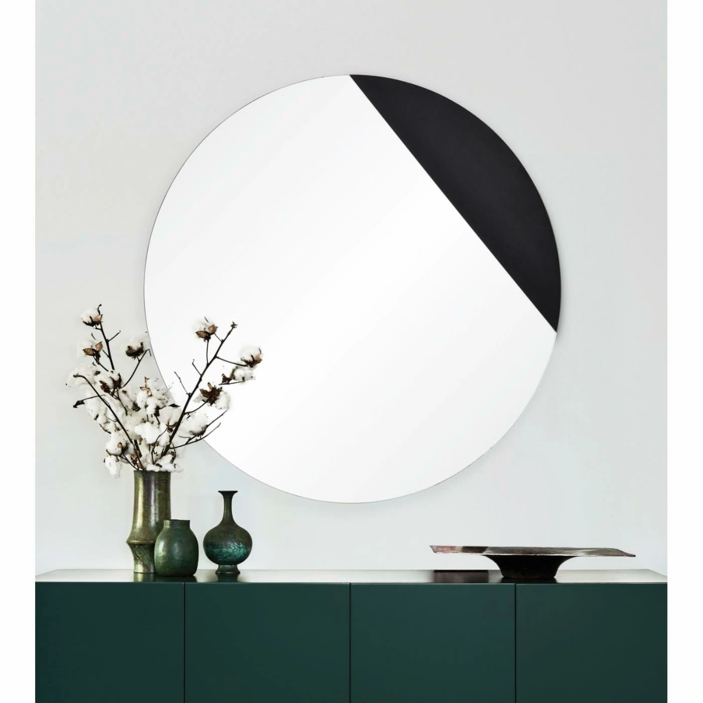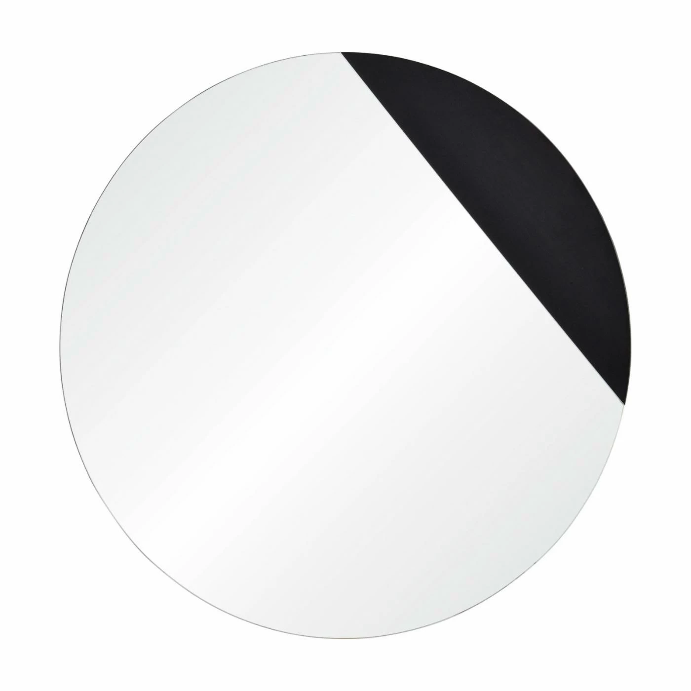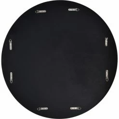 The Renwil Aver Wall Mirror – 40 diam. in. is a unique spherical mirror with a minimal design. A black wood veneer sliver contrasts beautifully with the pure glass for a modern look. Hanging hardware is attached to the back.