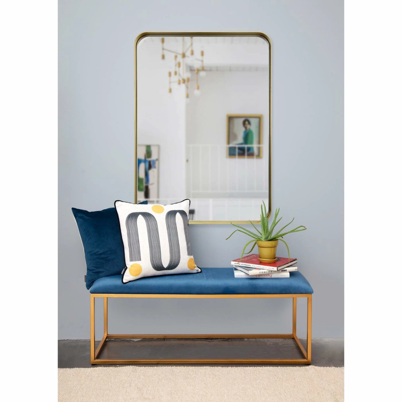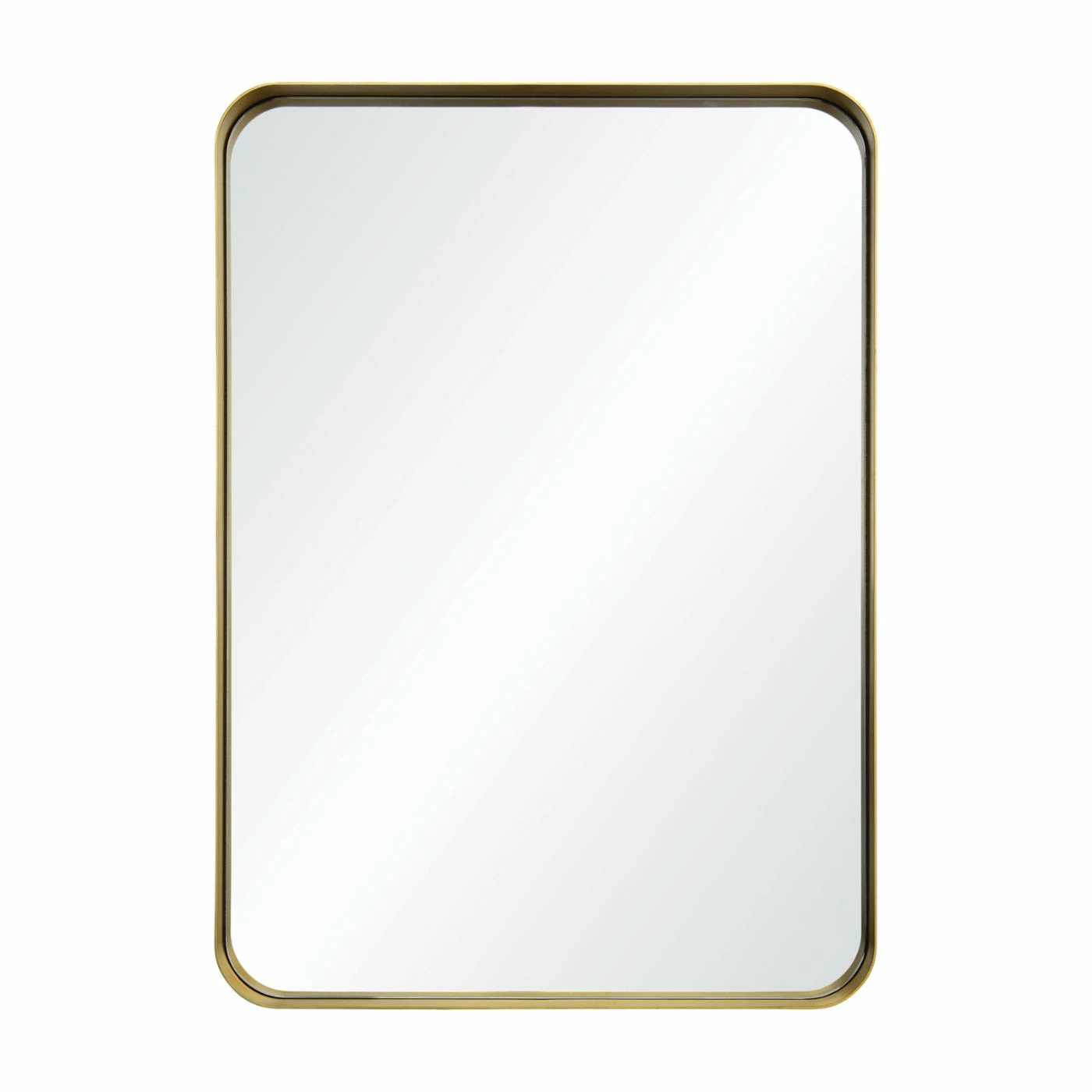 Exuding complete contemporary style, the Renwil Barton Brushed Gold Antique Iron Framed Wall Mirror – 30W x 42H in. lends your home a sleek, modern element. This curved wall mirror is surrounded by an iron frame enhanced with a brushed antique gold finish. Hang it up in a hallway, bedroom, or living space to give your home an infusion of vibrant, updated style.