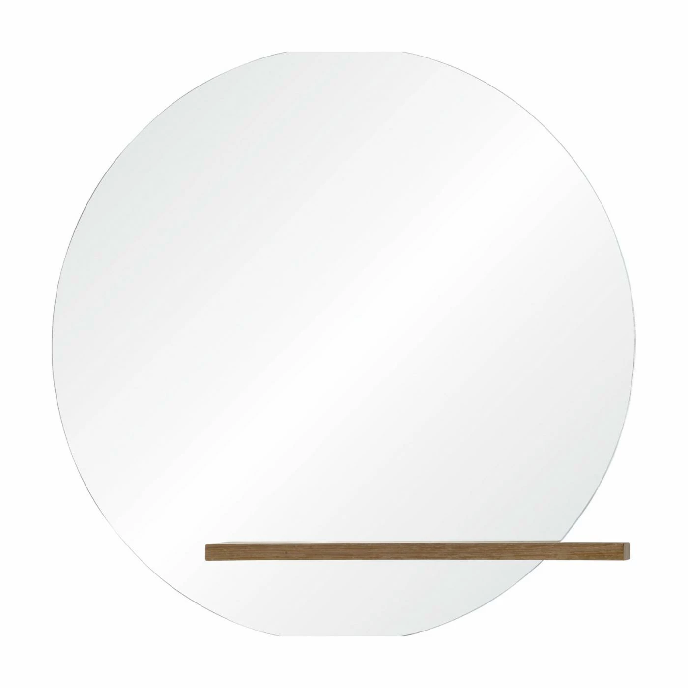The Renwil Bassett Wall Mirror – 36 diam. in. is both a wall mirror and shelf in one! It features a perfectly spherical mirror with a wood veneer shelf adding clean lines to this piece. Hanging hardware is attached to the back for easy hanging.