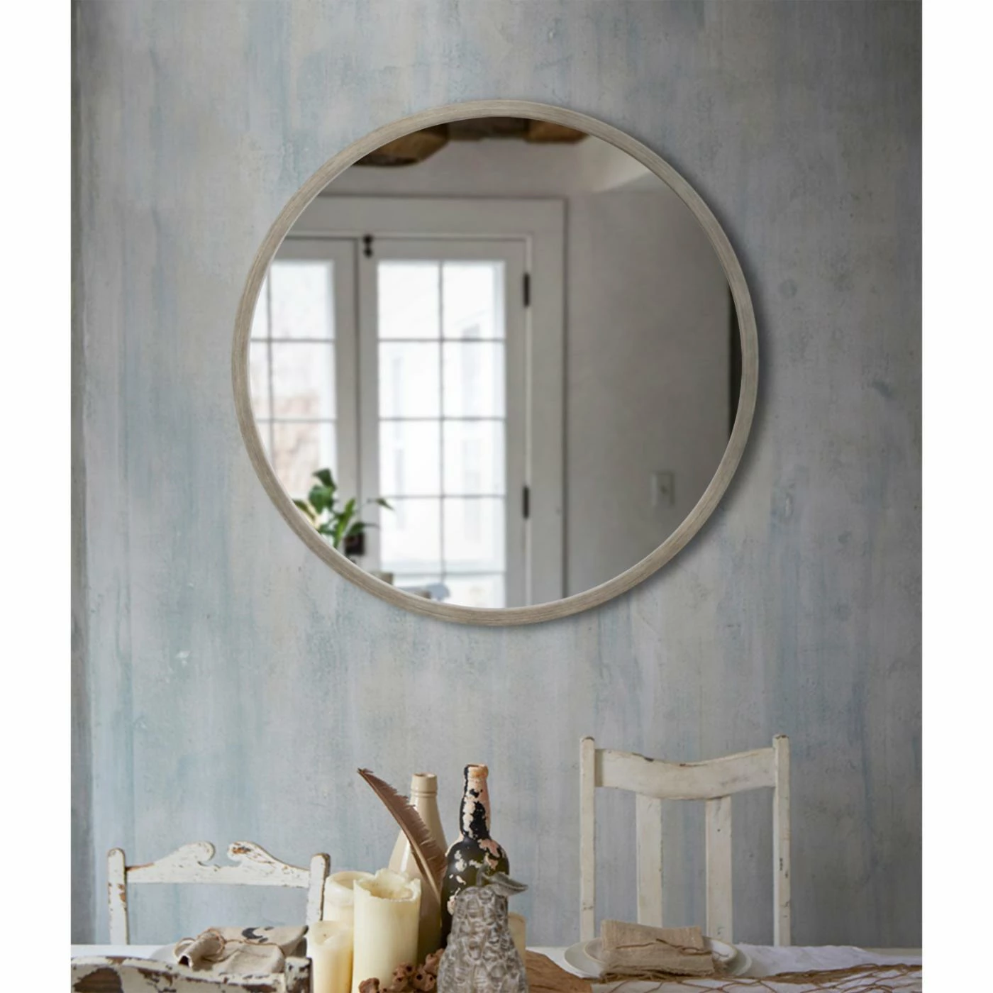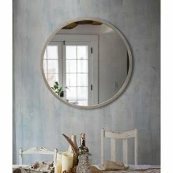 Add a simple, rustic accent to your wall with the Renwil Birman Round Wall Mirror. This round mirror features a sturdy frame of engineered wood. A relaxed gray finish elegantly accents the natural look of the wood. Hardware comes with this wall mirror, making it simple to add to your wall.