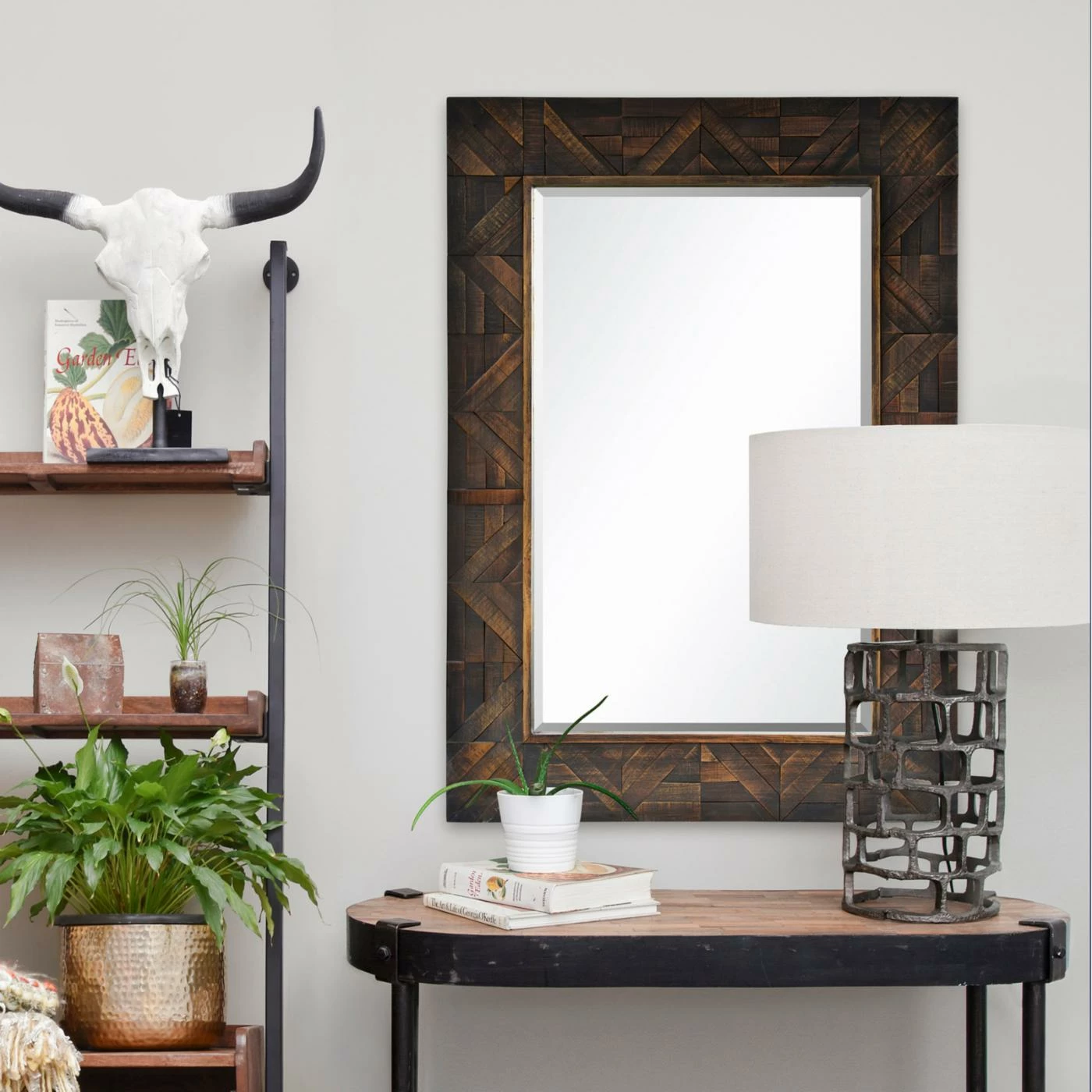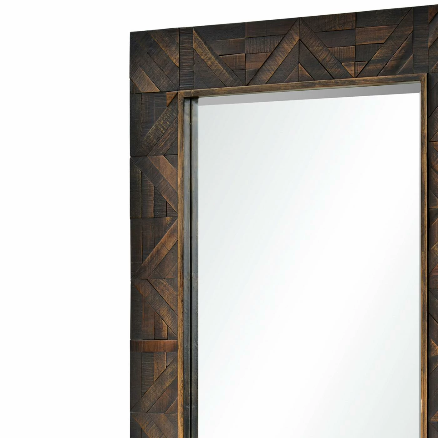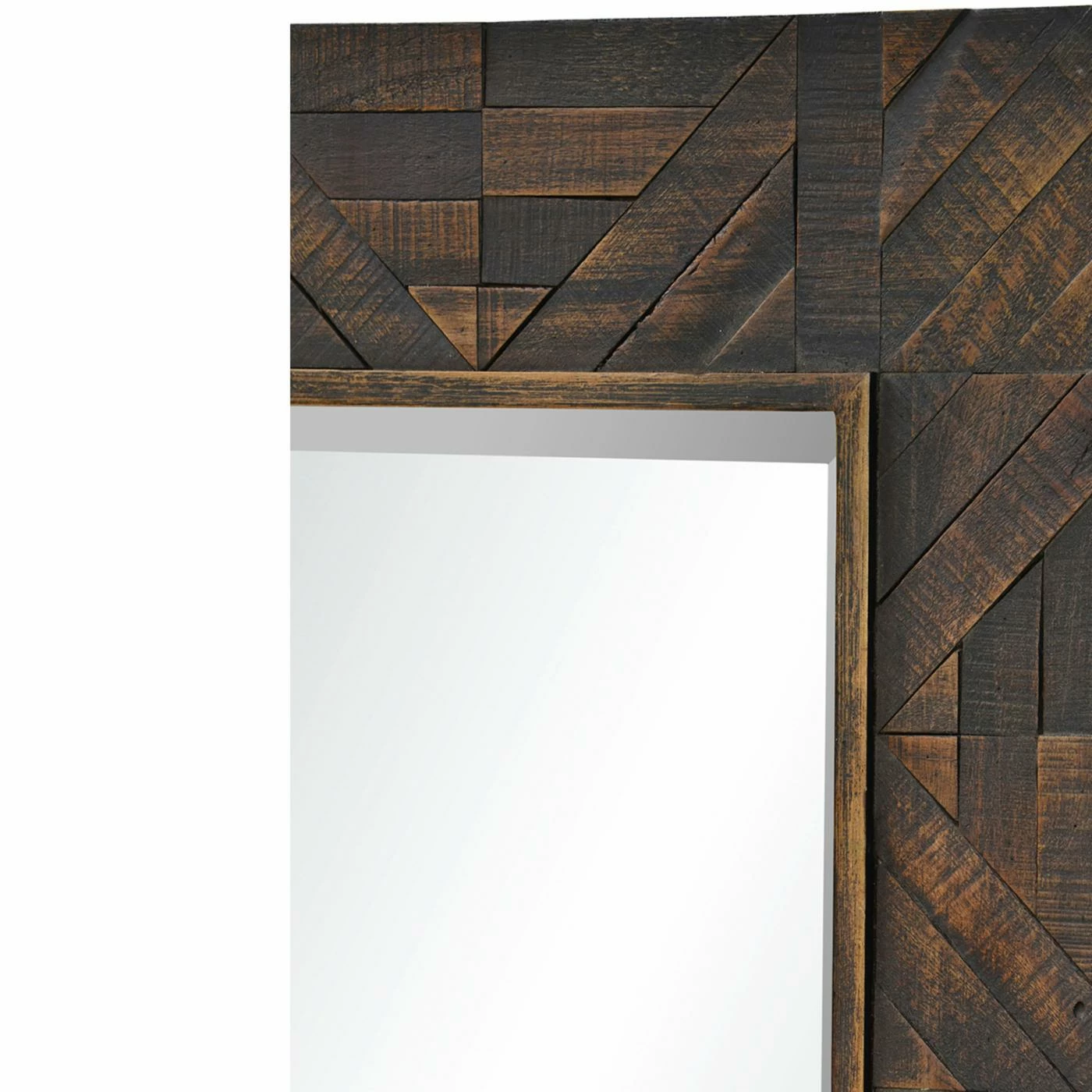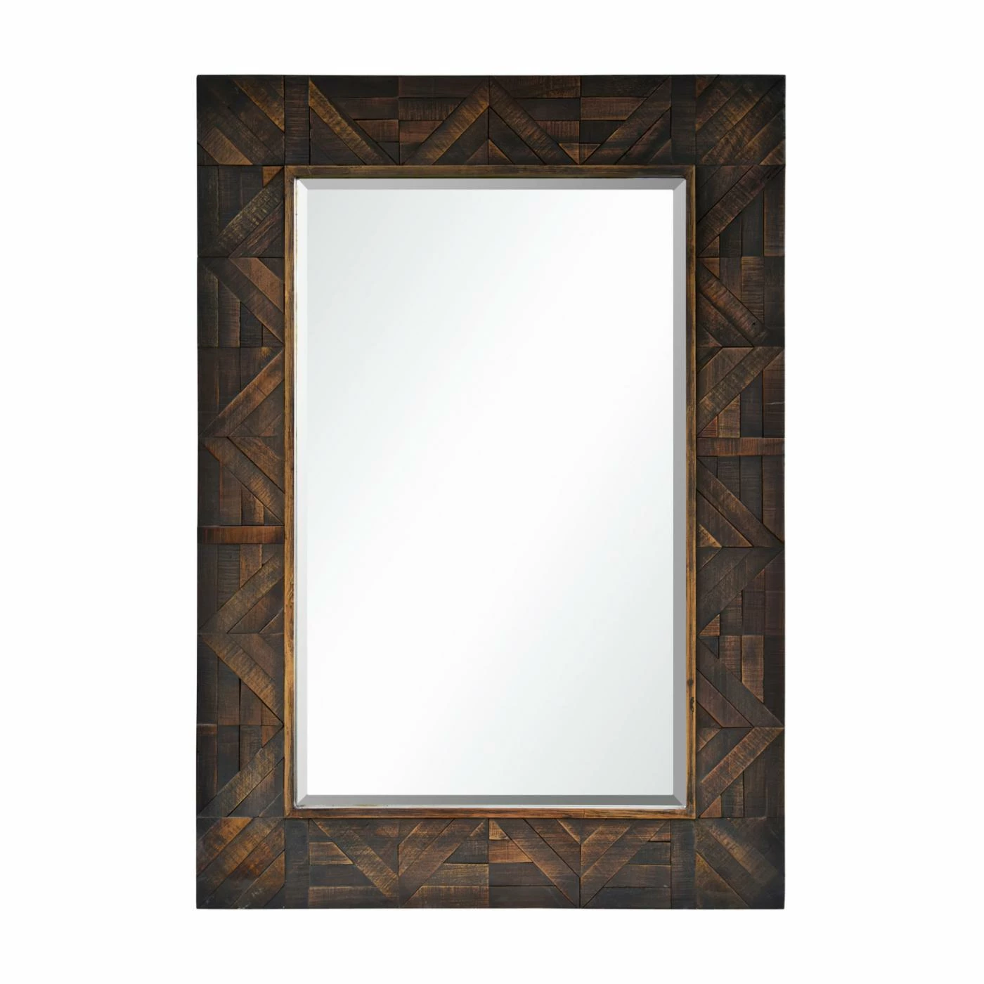 The Renwil Madden Wall Mirror – 30W x 42H in. has a rich design and finish that would look brilliant paired with jewel tones or other wood pieces. This wall mirror features a classic rectangular mirror surrounded by a firwood frame. The dark brown finish looks extra decadent on the intricate wood block pattern. Hanging hardware is attached to the back for easy hanging.