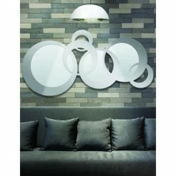 Instantly feel like you’re swimming in a bottle of bubbly with the Ren-Wil Dublin Circle Wall Mirror – 71W x 33H in. on your wall. Six multi-size mirrors interlock, forming a festive grouping that adds a sculptural touch to your room. The silver metal frame adds to the sparkle for a stunning accessory.