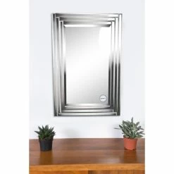 The perfect way to check your cloche hat or straighten the fringe on your flapper dress, the Ren-Wil Edessa Wall Mirror – 24W x 36H in. shows off gorgeous Art Deco style. The sparkling rectangular mirror features a classic and timeless look. The clean lines and vintage style of the staggered panel frame make it an elegant accessory in any room.