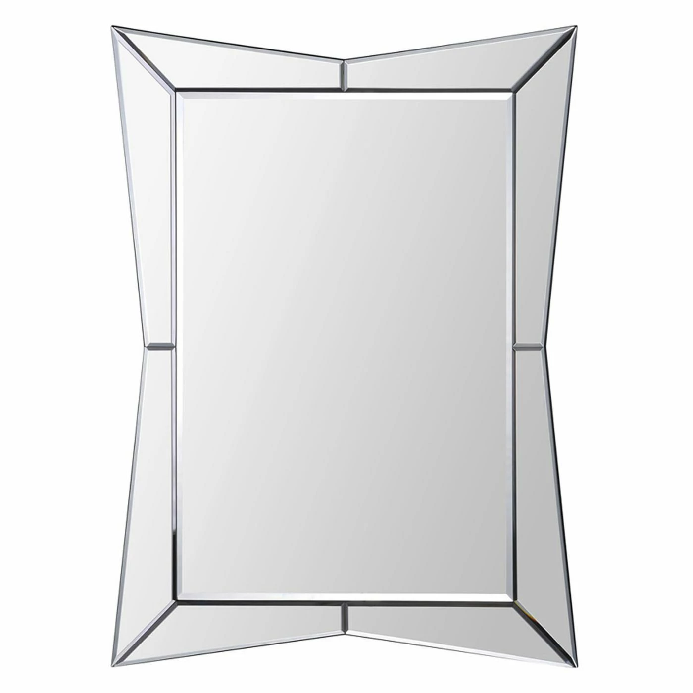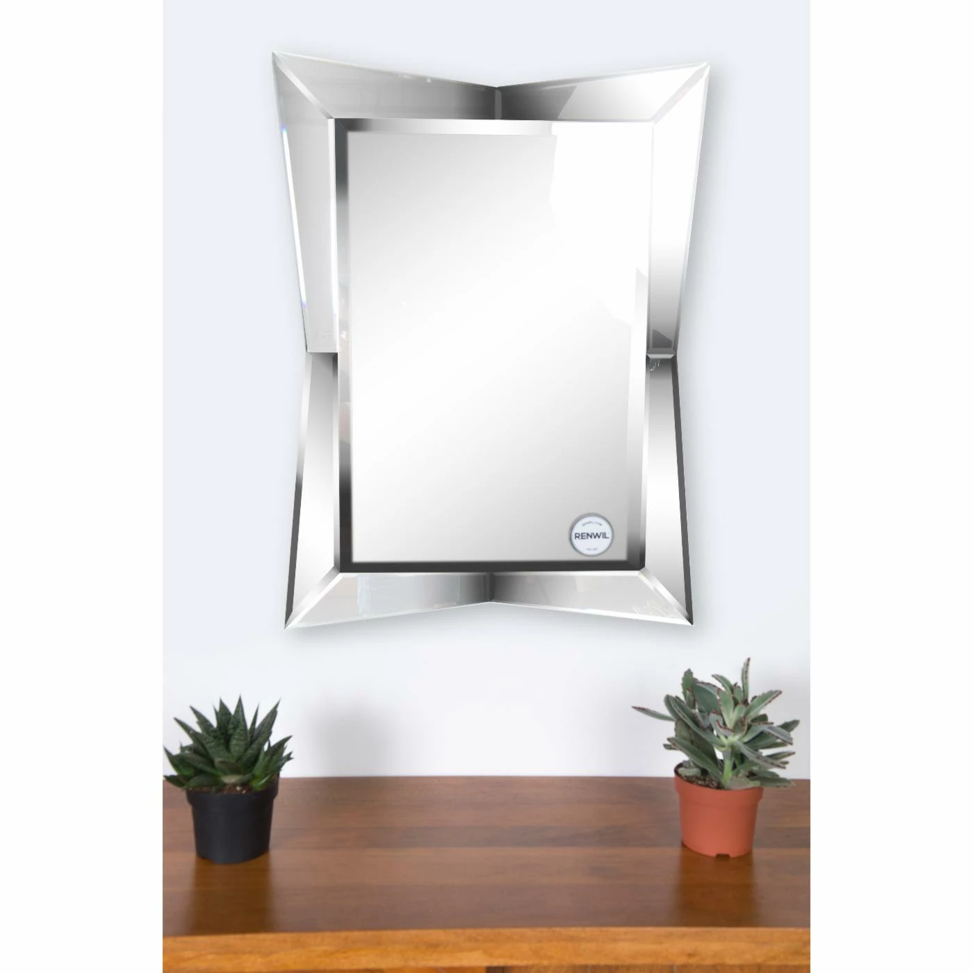 The Ren-Wil Merritt Wall Mirror – 24W x 32H in. has the confidence to know how cool it is, and that carries through the whole room. The clean elegance of the polished mirror brightens any room. A uniquely shaped glass frame adds intrigue and a stunning modern look. Beveled edges provide a finished feeling, making it a gorgeous accessory.