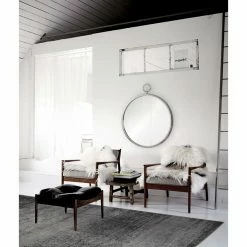 The Ren-Wil Porto Wall Mirror – 23.5W x 30H in. is a streamlined nautical design. As the name implies, this sleek wall accent was inspired by a shipβs porthole. It features a shimmering chrome frame encircling a round glass surface and includes a wall-mounting hook for suspending the piece wherever you wish.