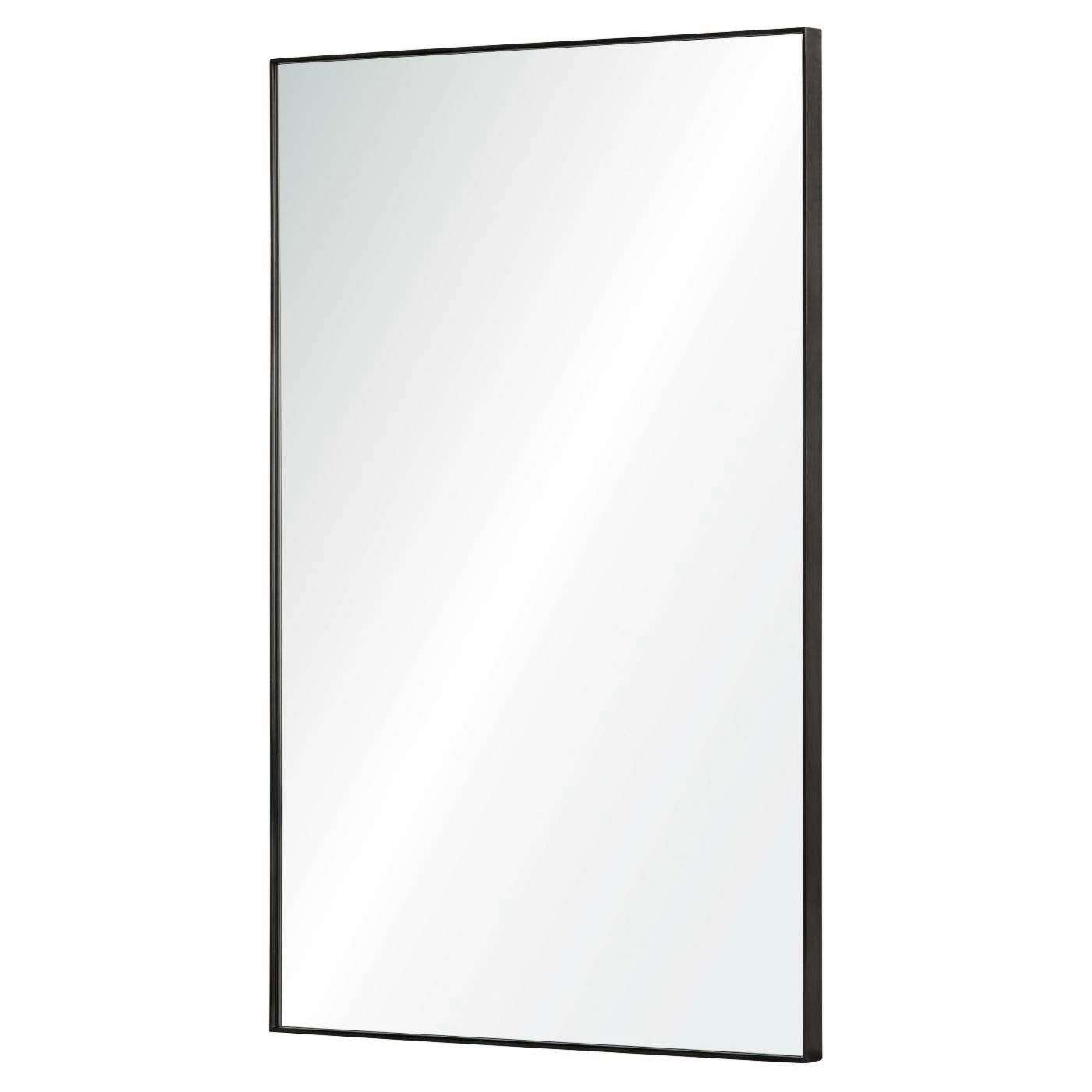 The Ren-Wil Vale Wall Mirror – 21W x 32H in. is a sleek, contemporary design from artist Jonathan Wilner. This generously sized wall-mounted mirror features an ultra-thin metal frame in charcoal gray so as not to distract from the extra-large, crystal-clear reflection.