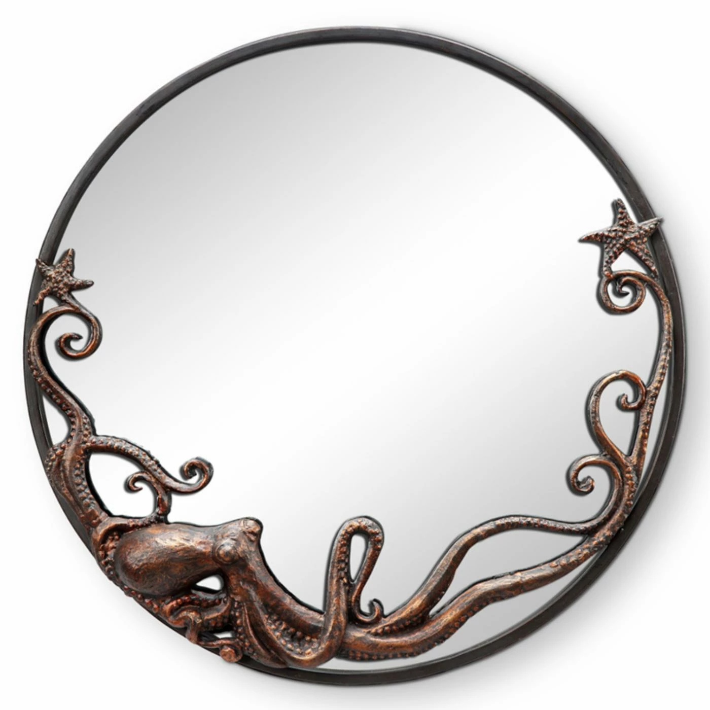 Bring a little coastal whimsy to your chic dΓ©cor with the San Pacific International Octopus Round Wall Mirror. This cast iron wall mirror makes a fun addition to a living room or bathroom.