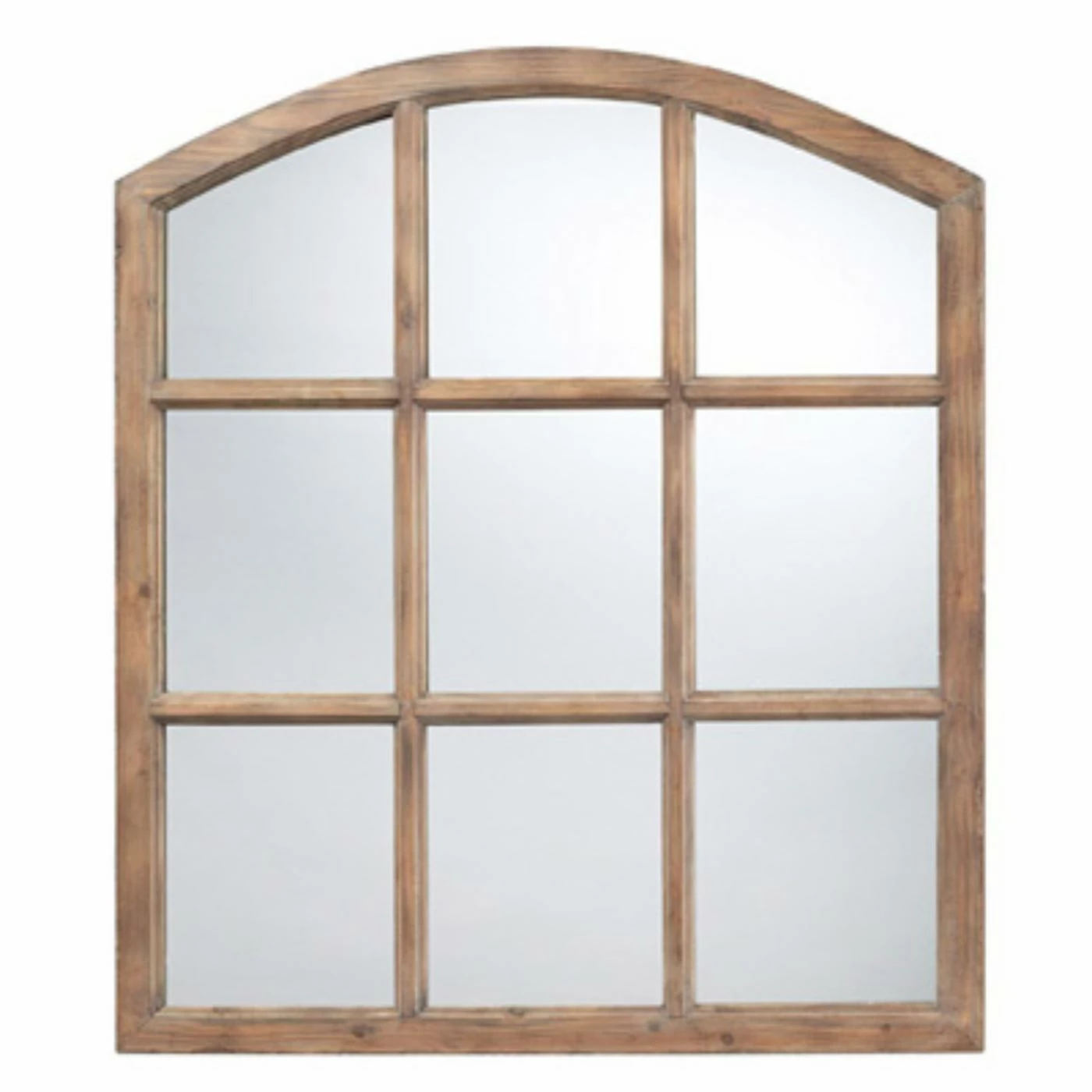 Add depth to any space with the Sterling Union Wood Arched Natural Oak Wall Mirror – 33W x 37H in. This wall-mounted mirror is designed in an arched rectangular shape and features a wooden frame with Gregorian style window panels. This mirror is ideal for bringing extra dimension to areas that feel cramped, such as the hallway or foyer. You can also place this mirror above the mantle in the den or living room for a decorative accent that’s sure to enhance your dΓ©cor.