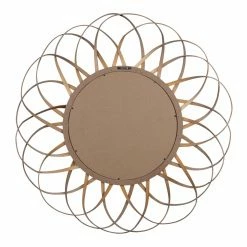 Impress guests with your love for boho-themed interior design. This curved wall mirror features a flower-themed, layered wood frame. It shows off an attractive slight white-washed finish, topped off by visible grain and knot details for accent. Attached sawtooth on back for hanging.