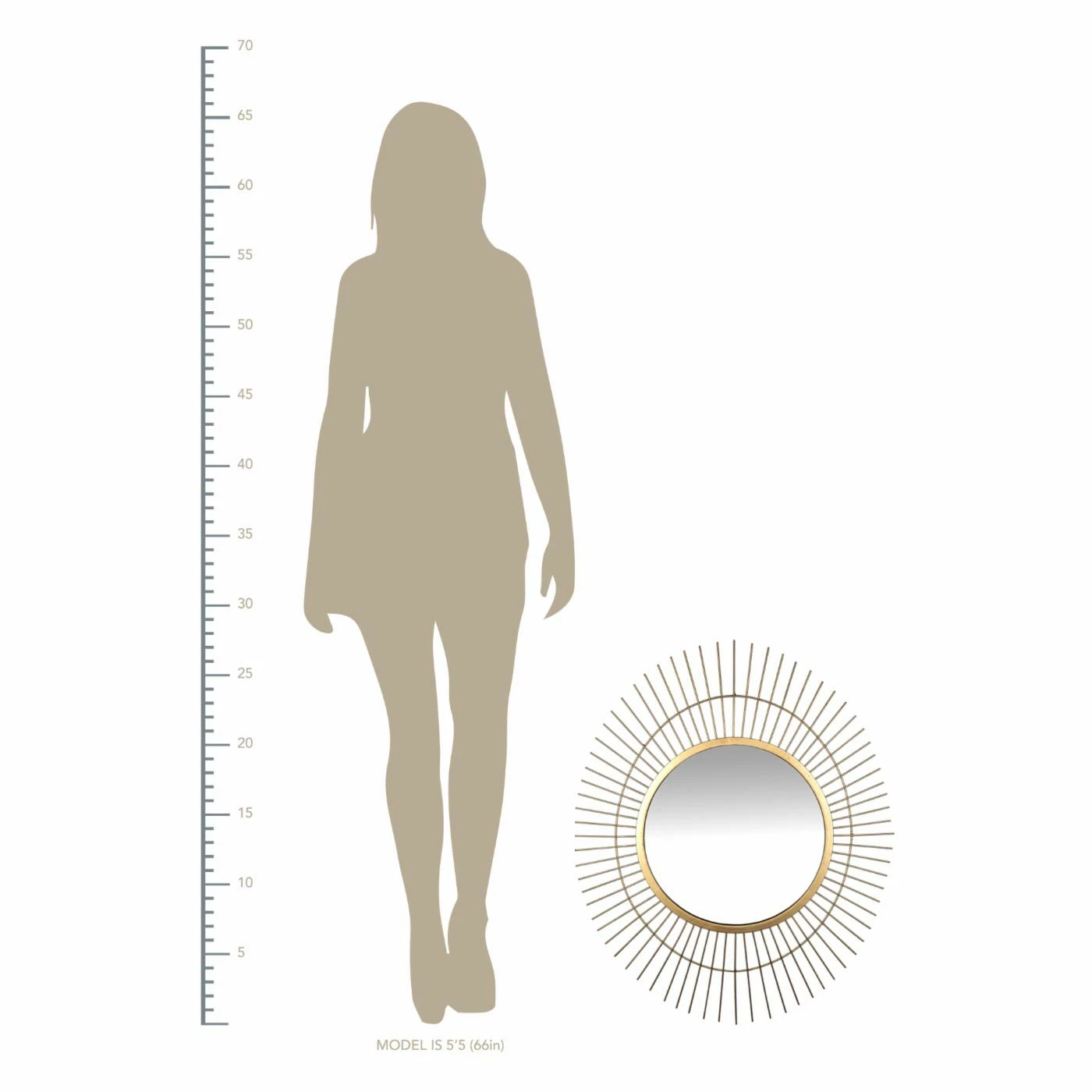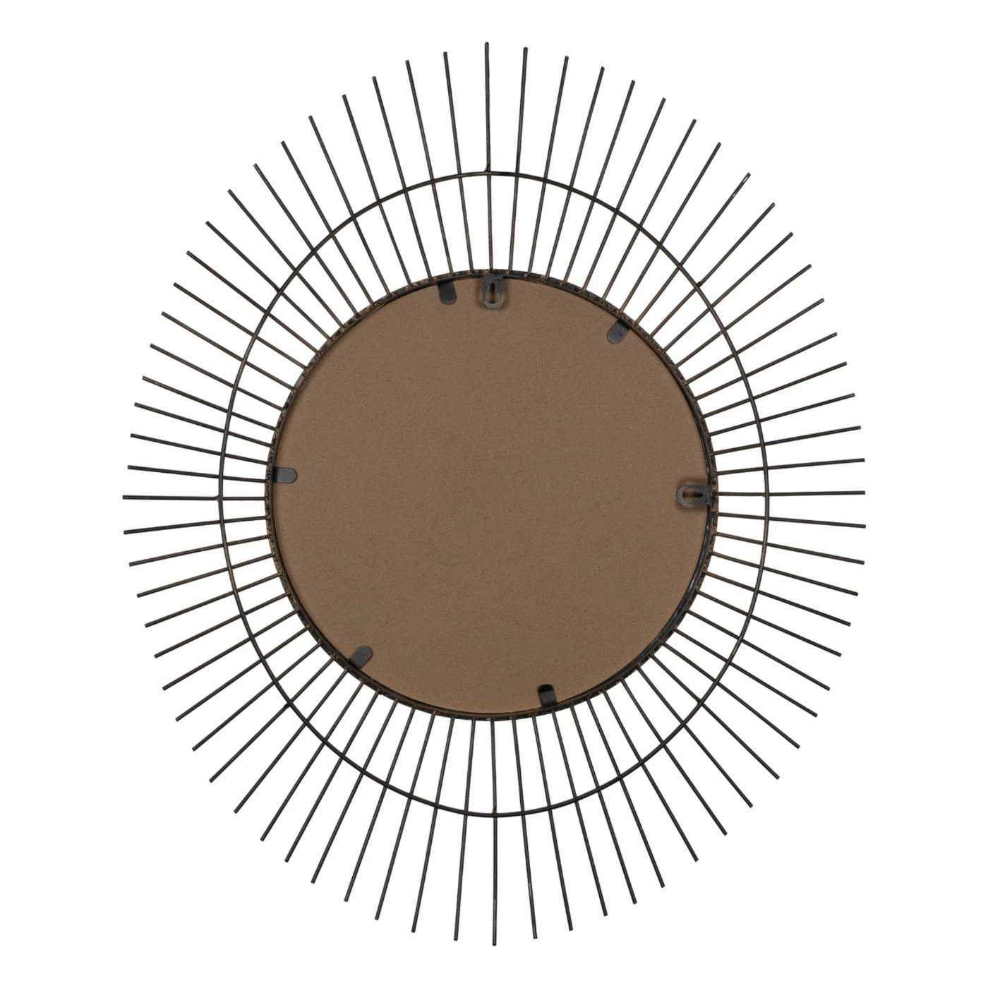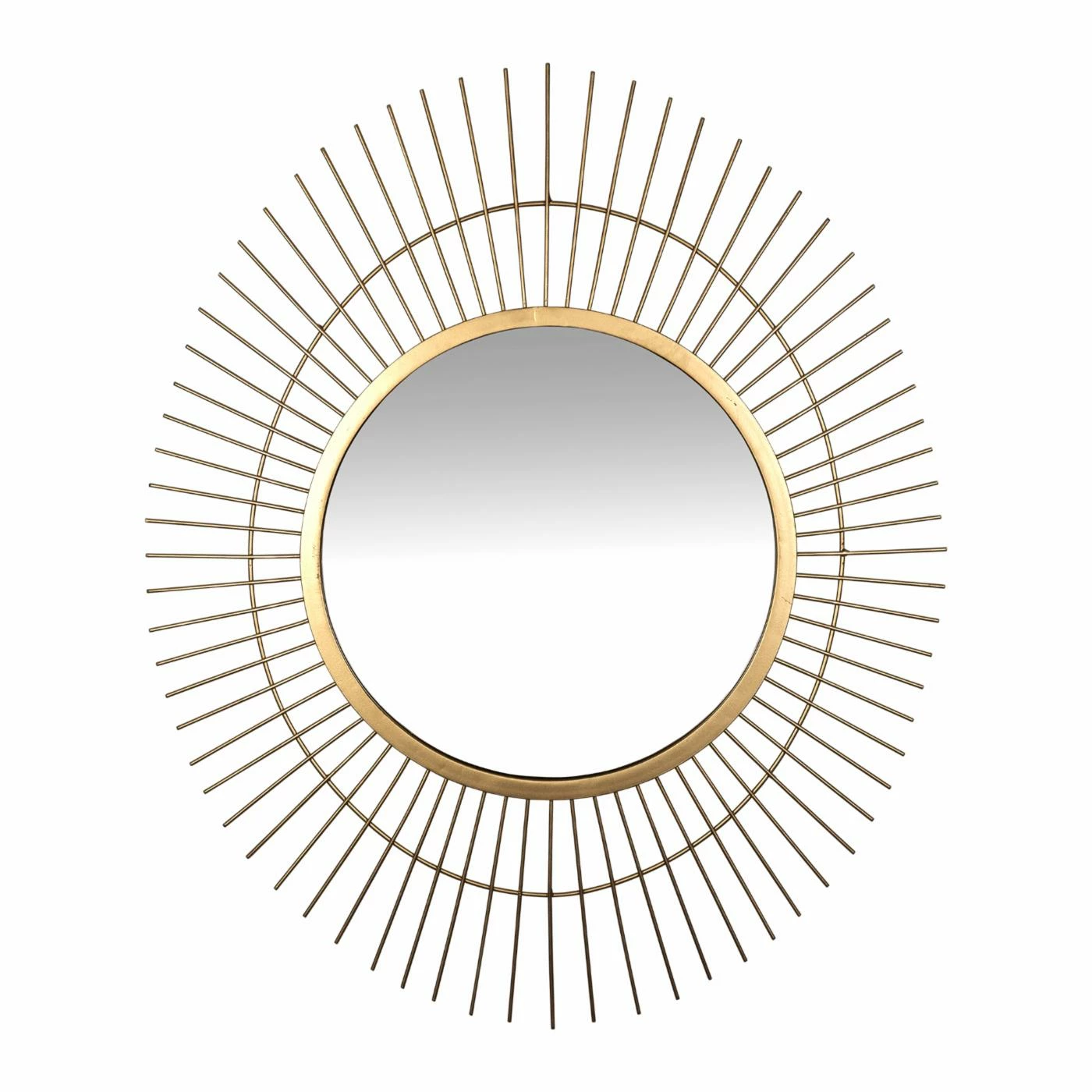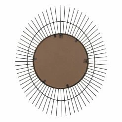 Liven up your home with this handcrafted wall piece. This wall mirror features a round center that is surrounded by decorative spokes to create a unique oval shape. The whole piece has a matte gold finish that makes it stand out in your space. Attached keyhole on back for hanging.