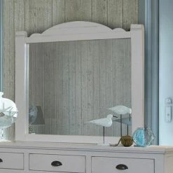A wavy frame top with planked wood accents lend the Sunset Trading Coastal Charm Wall Mirror distinctively chic appeal. This wall mirror features a solid pine wood construction with pine veneer panels for a durable design. Its matte gray finish is accented with hand-rubbed edges, lending the mirror coastal styling.