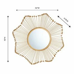 The TOV Furniture Ray Gold Starburst Wall Mirror – 32 diam. in. is an explosion of glam, mid-century-inspired style for your wall. An iron frame features a sunburst design of beaded spokes in a luxe gold finish. This wall mirror is handmade by skilled artisans and hanging hardware is conveniently included.