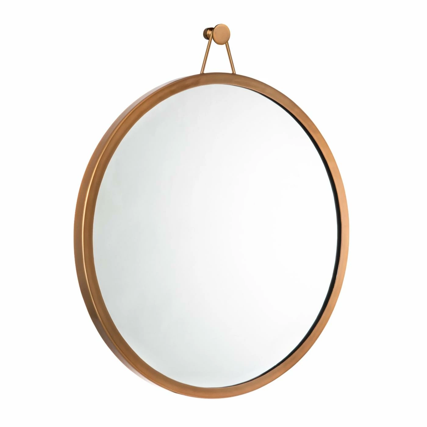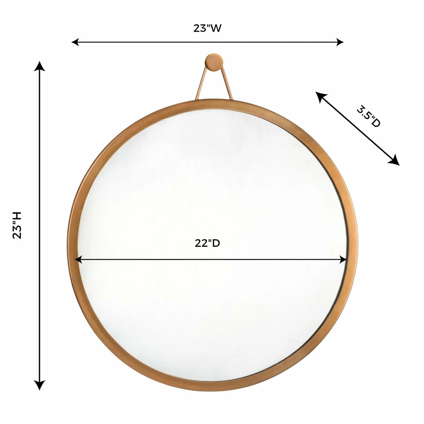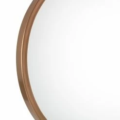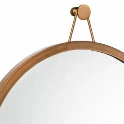 Spruce up an empty wall in your entryway with the TOV Furniture Rowan Round Brass Wall Mirror – 23 diam. in.; maybe hang it next to a glam-modern coat rack. This wall mirror adds luxe style any space, with its simple, round iron frame in a brass finish. A decorative hook at the top provides a little added dimension to break up the look. Hanging hardware is included.