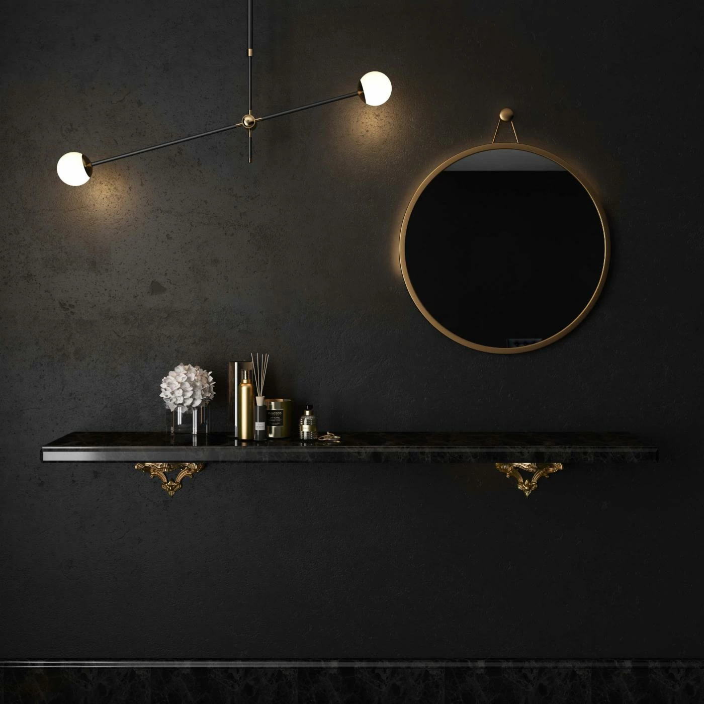 - Round glass mirror