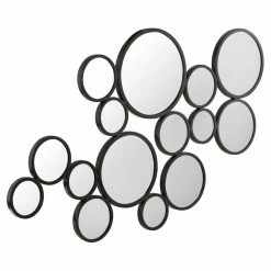 Reflect the beauty of your space with the TOV Furniture Zoha Wall Mirror – 46W x 25H in. This eye-catching wall mirror features 15 circular mirrors in varying sizes clustered together for a bold look. Black iron frames hold glass mirrors. This piece arrives ready-to-hang right out of the box.