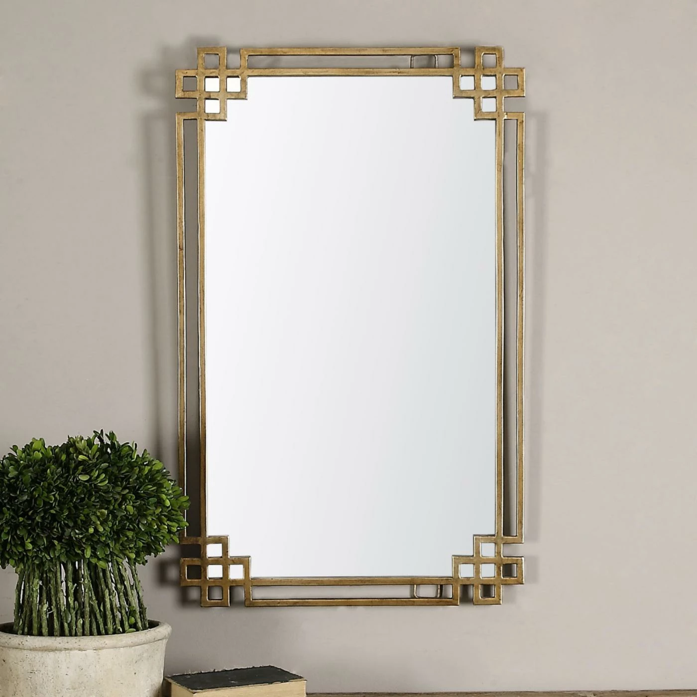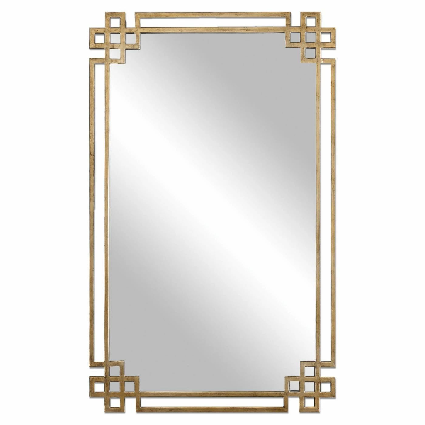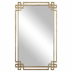 The dynamic Uttermost Devoll Wall Mirror – 22.75W x 36.63H in. features an intricate frame hand-forged from metal finished in plated, oxidized gold with antiqued details. The rectangular mirror can be hung horizontally or vertically and would make an eye-catching accent to any room in your home.