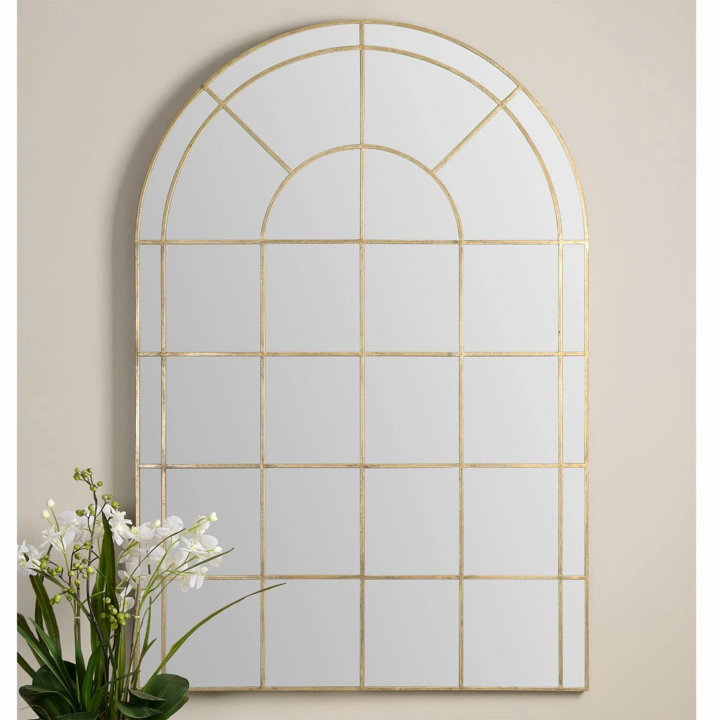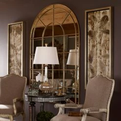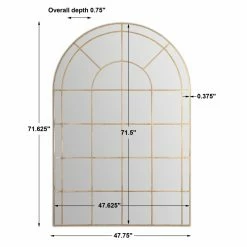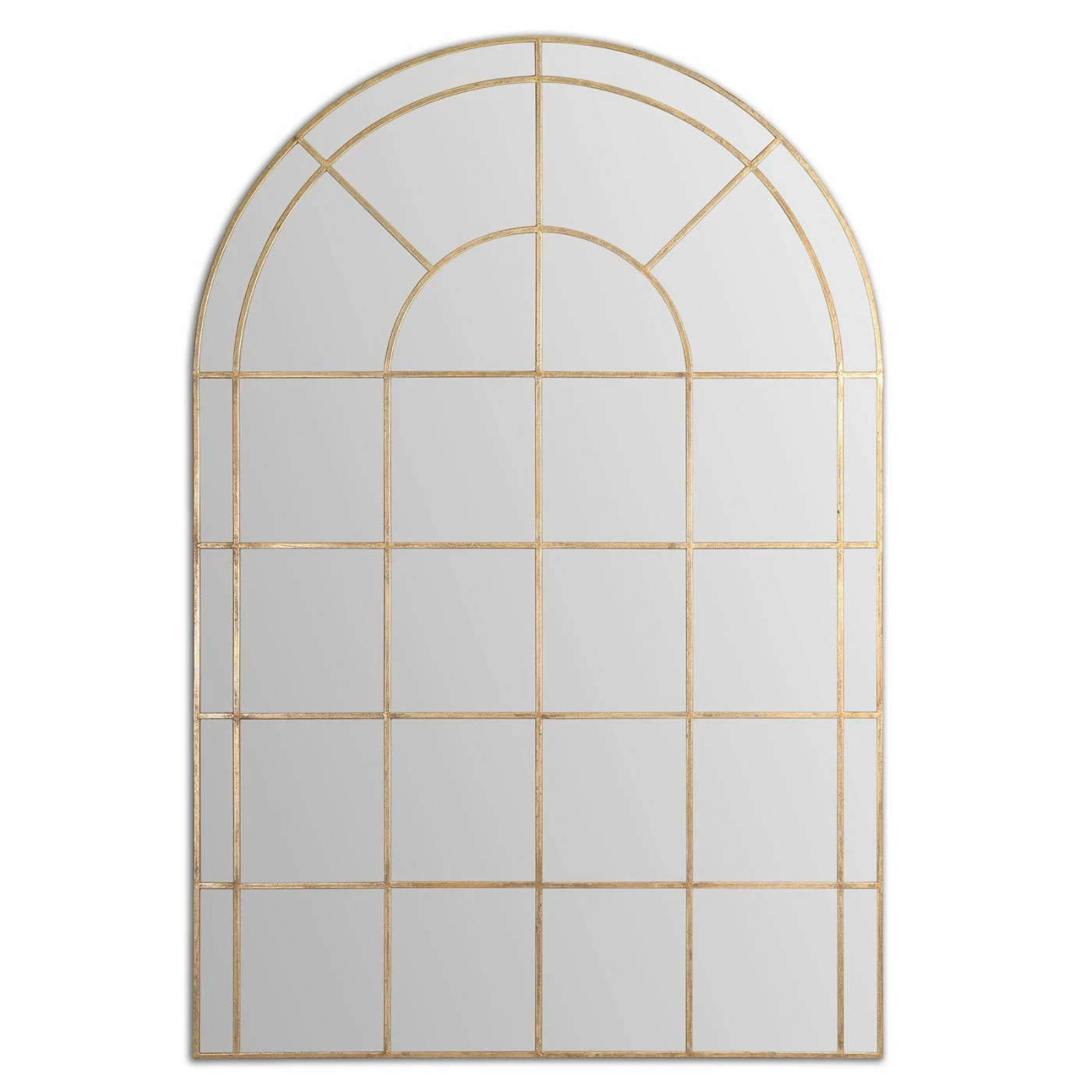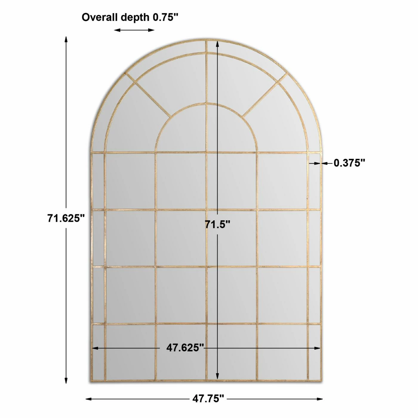 The captivating Uttermost Grantola Arched Wall Mirror – 47.75W x 71.63H in. adds an extraordinary sense of depth to any space. At first glance it appears to be a window into an even larger room, but upon closer inspection, it’s perhaps even more impressive. This arched mirror with a windowpane-inspired frame is crafted from hand-forged metal and features an antiqued gold finish for even greater elegance.