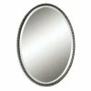 Bring an edgy look to your home decor with the Uttermost Niva Metallic Gold Wall Mirror, surrounded by a thick tapered frame crafted of forged iron. This curvaceous wall mirror is further emboldened with a two-toned finish in colors of metallic gold leaf and black. Beveled edges gives it a luxurious finishing touch, and it can be hung horizontally or vertically to suit your needs.