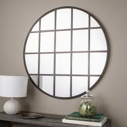 Add a mod accent to your wall with the Walker Edison Round Beveled Window Wall Mirror – 40W x 40H in.. This round mirror features a grid overlay and border in a black finish. Each mirror’s section has a beveled edge to add do the dimensional look. The contemporary design will beautifully fill in a blank space above any piece of accent furniture.