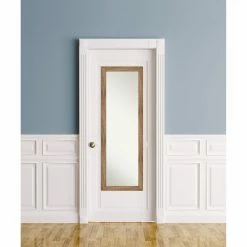 The impressive Amanti Art Owl Brown Narrow Full Length Door Mirror – 17W x 51H in. may be mounted horizontally or vertically. Its wide solid wood frame is finished in a warm light brown with gray, cream, pink, and mauve undertones. A non-beveled edge mirror offers a clear, undistorted reflection, making it perfect for your bedroom or dressing room door. This full-length mirror was handcrafted in the USA.