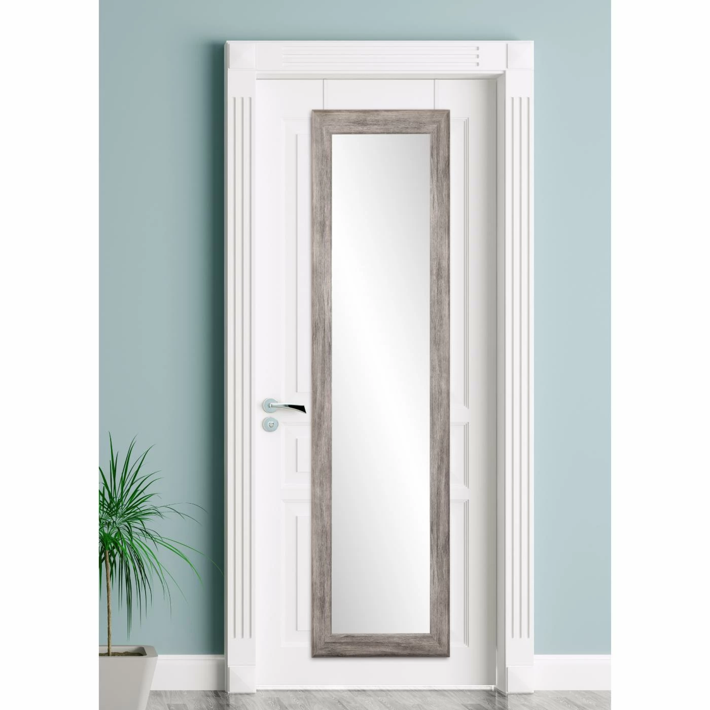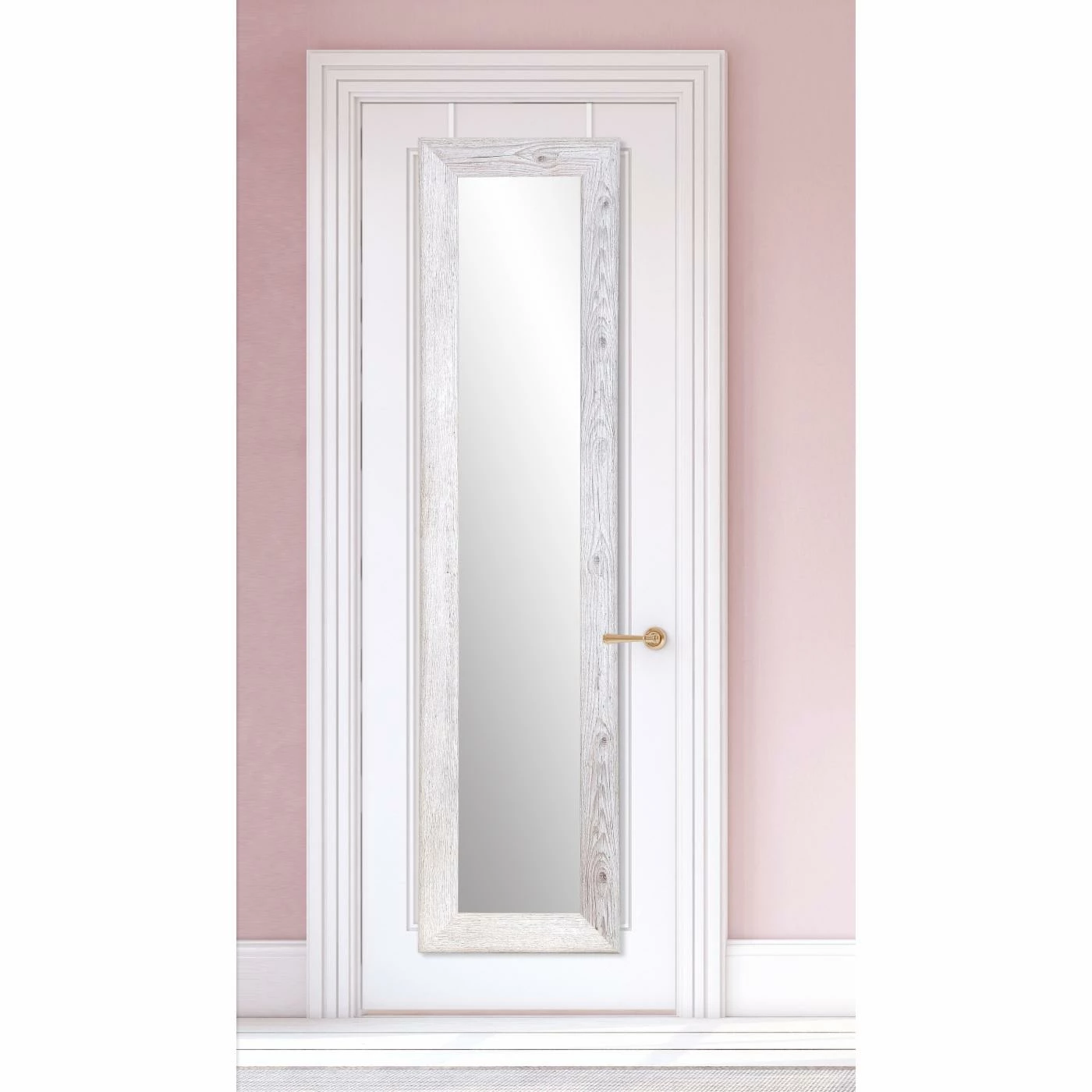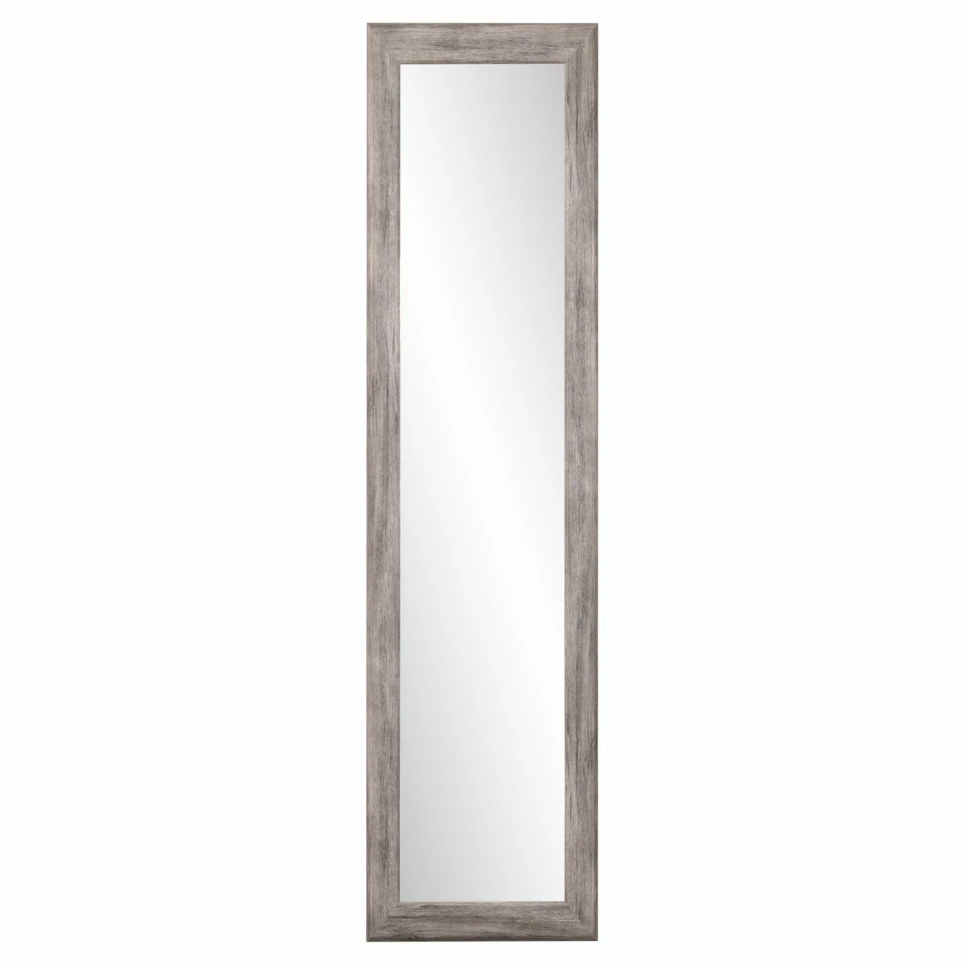 The faux wood grained BrandtWorks Weathered Barnwood Slim Over the Door Mirror – 22W x 71.5H in. is a perfect solution for small spaces or rental homes, especially those with rustic themes or a modern farmhouse look. Don’t worry about complicated installation and holes in the wall – simply hang your mirror over the door. This over-the-door mirror is made from sturdy engineered wood and mirrored glass. Hang it over your bedroom, bathroom, or even closet door so you can check out your outfit at the beginning of each day. The hanging hardware is included, and no assembly is required. Choose from available color options to best match your sense of style.