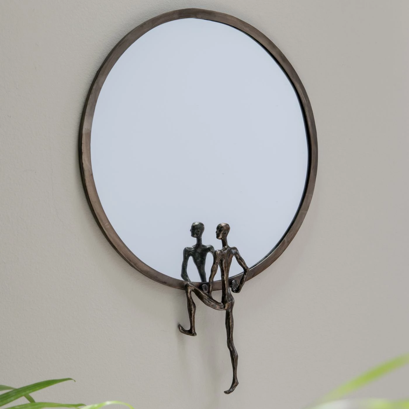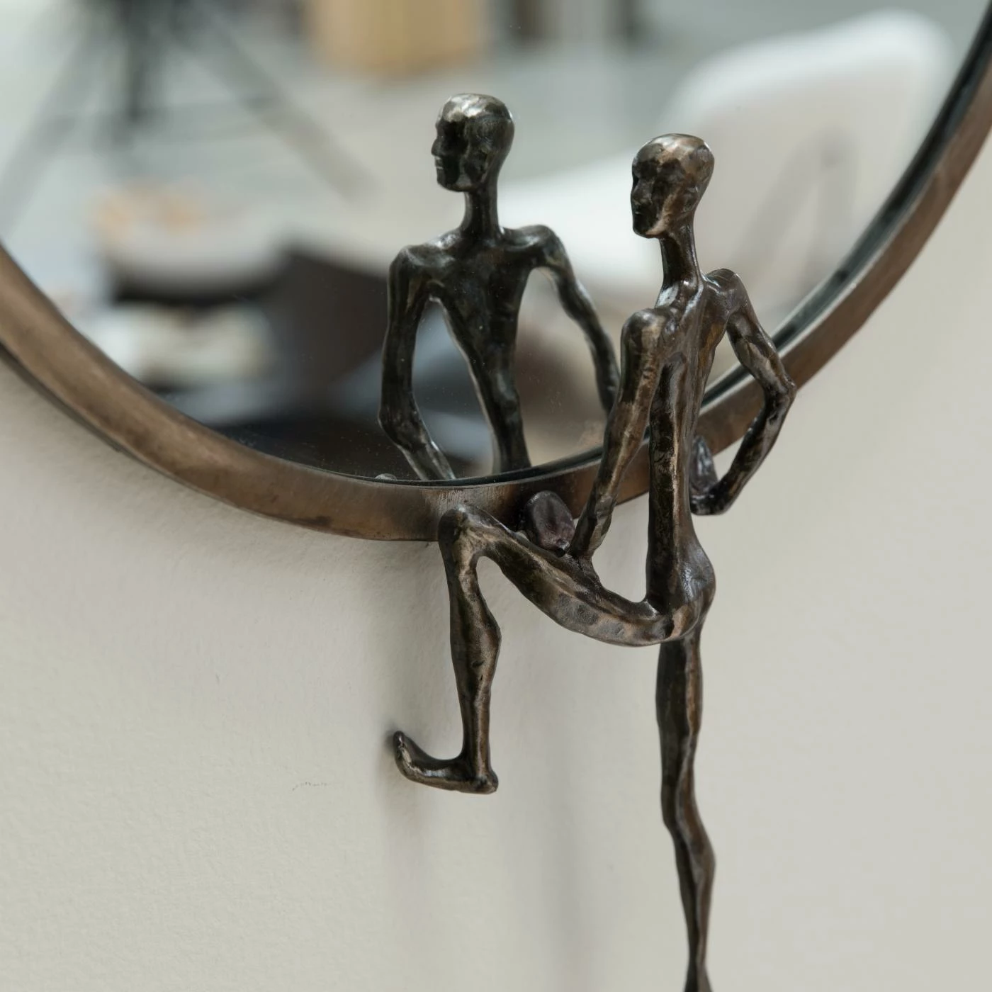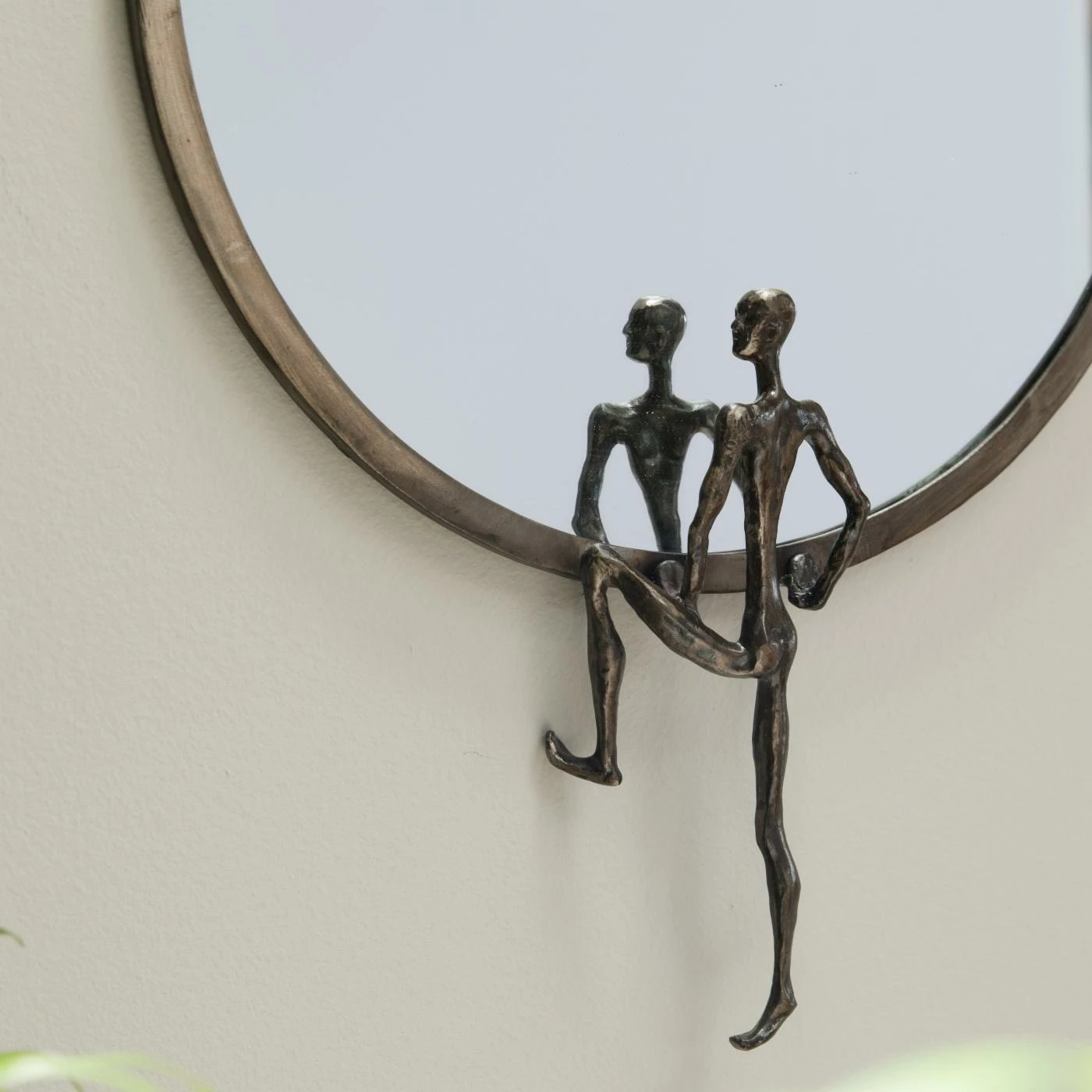 An abstracted male form clings to the edge of the Cyan Design Kobe Mirror – 18W x 24.5H in. and seems to examine his reflection in the gleaming glass. The distressed silver metal mirror is offered in your choice of available orientations, so you can use the piece alone or in pairs.