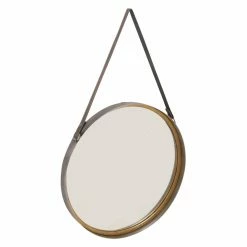 Add a simple yet stylish touch to your walls with the DecMode Yellow Iron Mirror with Hanging Strap – 20W x 33H in. This mirror features a durable engineered wood and iron construction. A gold finish dazzles in any space. This mirror includes a black hanging cord mounted to its top, which allows you to hang it on any hook.